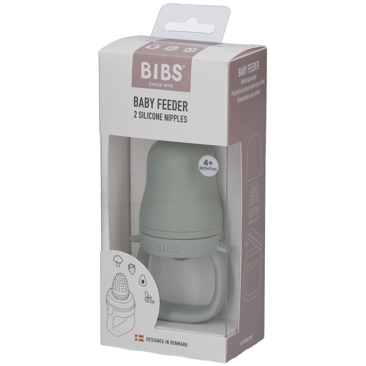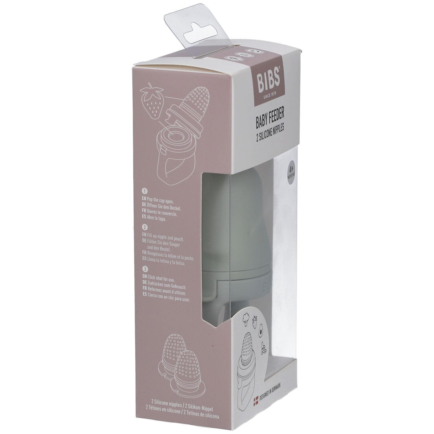 BIBS Baby-Feeder Salbei - детская кормушка-соска из мягкого силикона для безопасного введения прикорма. Позволяет давать грудное молоко, детское питание, фрукты и овощи. Имеет эргономичную ручку для маленьких ручек, массажные ребра для десен и защиту от протекания. Безопасный материал, можно мыть в посудомоечной машине.