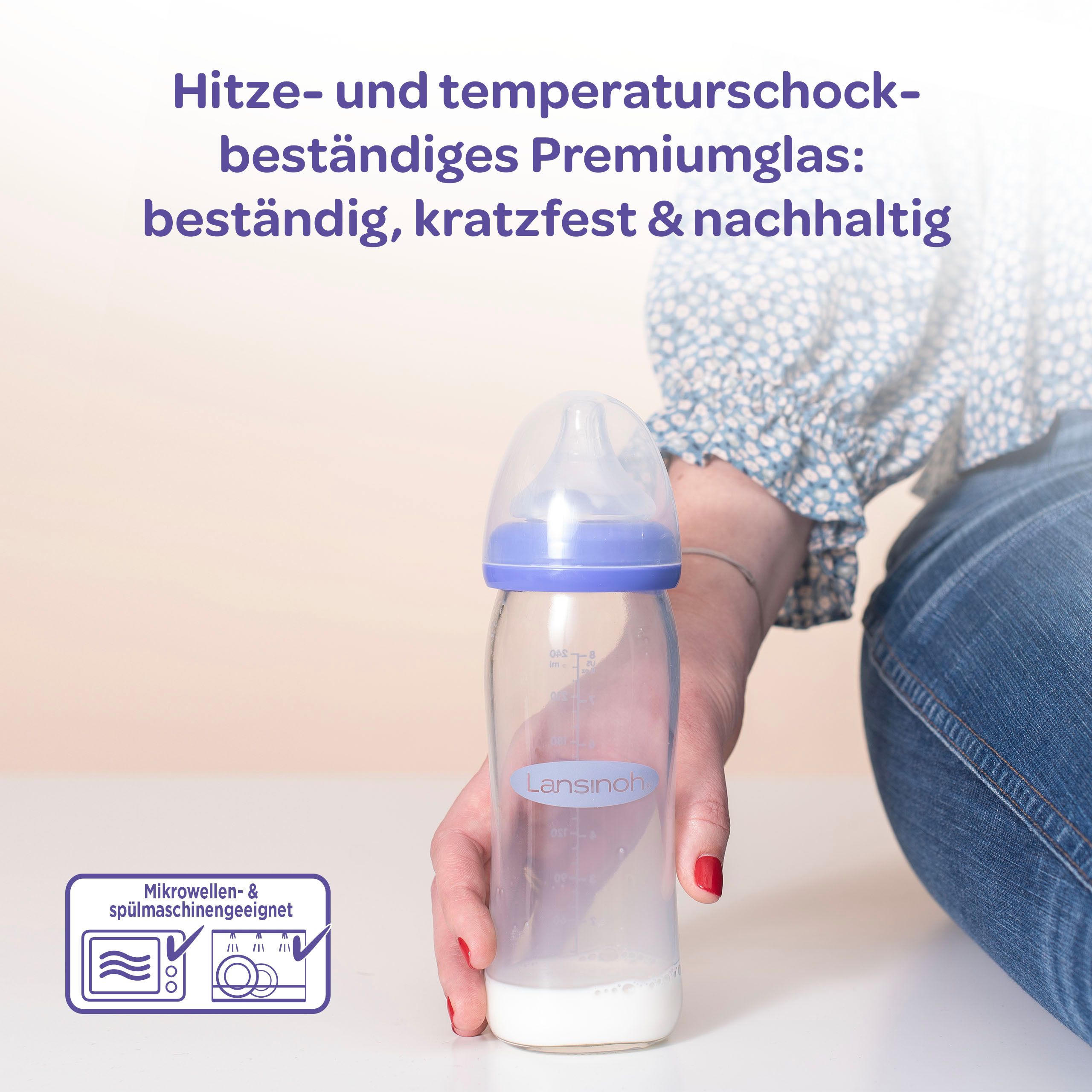 Lansinoh mOmma Glas Babyflasche 160ml mit Natural Wave Silikonsauger S