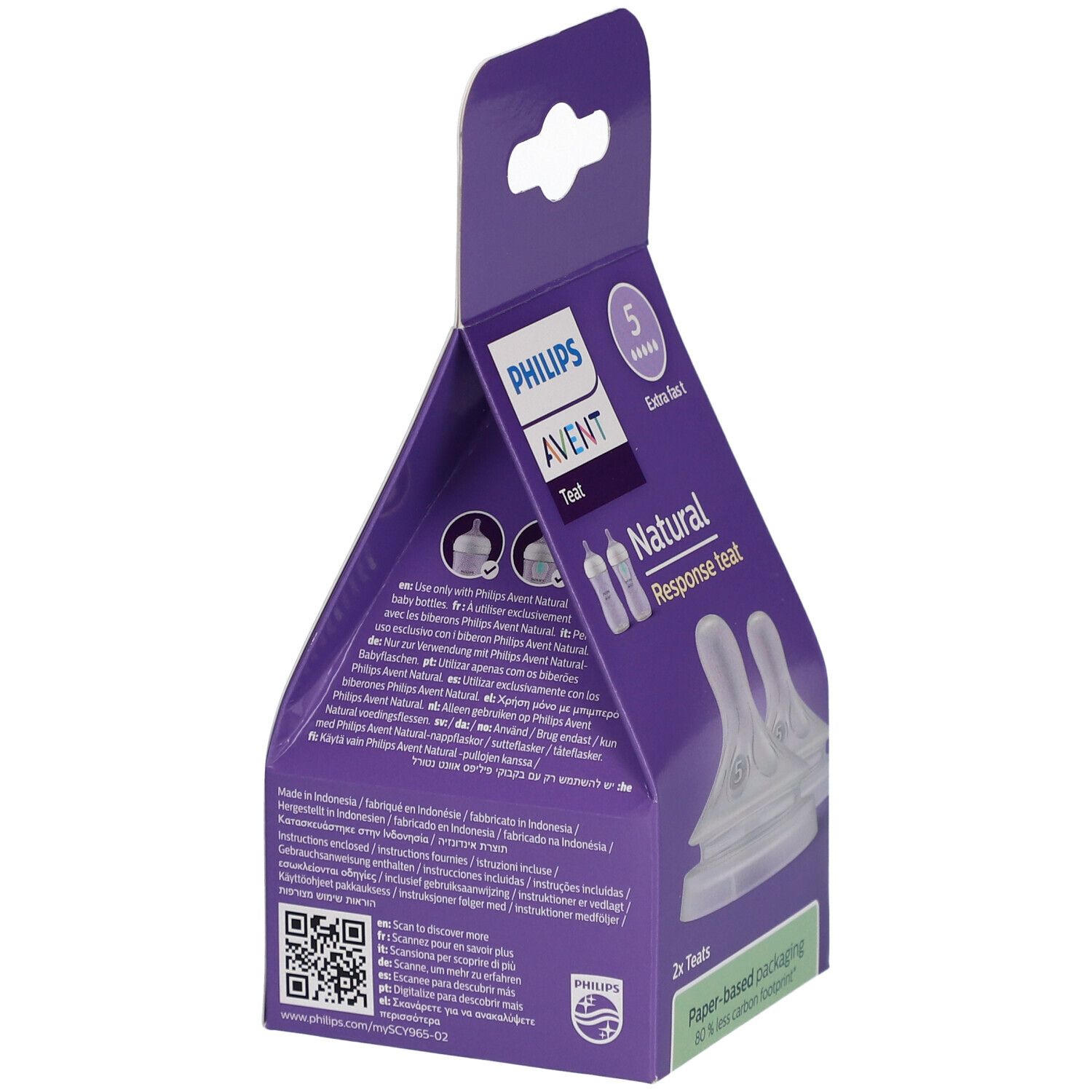 Соска для бутылочки PHILIPS AVENT Natural Response Flow Speen, имитирующая форму женской груди для естественного сосания. Пропускает молоко только при активном сосании ребенка, предотвращает колики и дискомфорт, не протекает. Безопасный BPA-свободный материал.