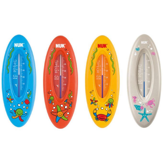 Детский термометр для ванны NUK Ocean с безопасным рапсовым маслом для измерения температуры воды. Безопасный, ударопрочный термометр с яркой шкалой и веселыми рисунками помогает контролировать оптимальную температуру для купания ребенка (37°C).