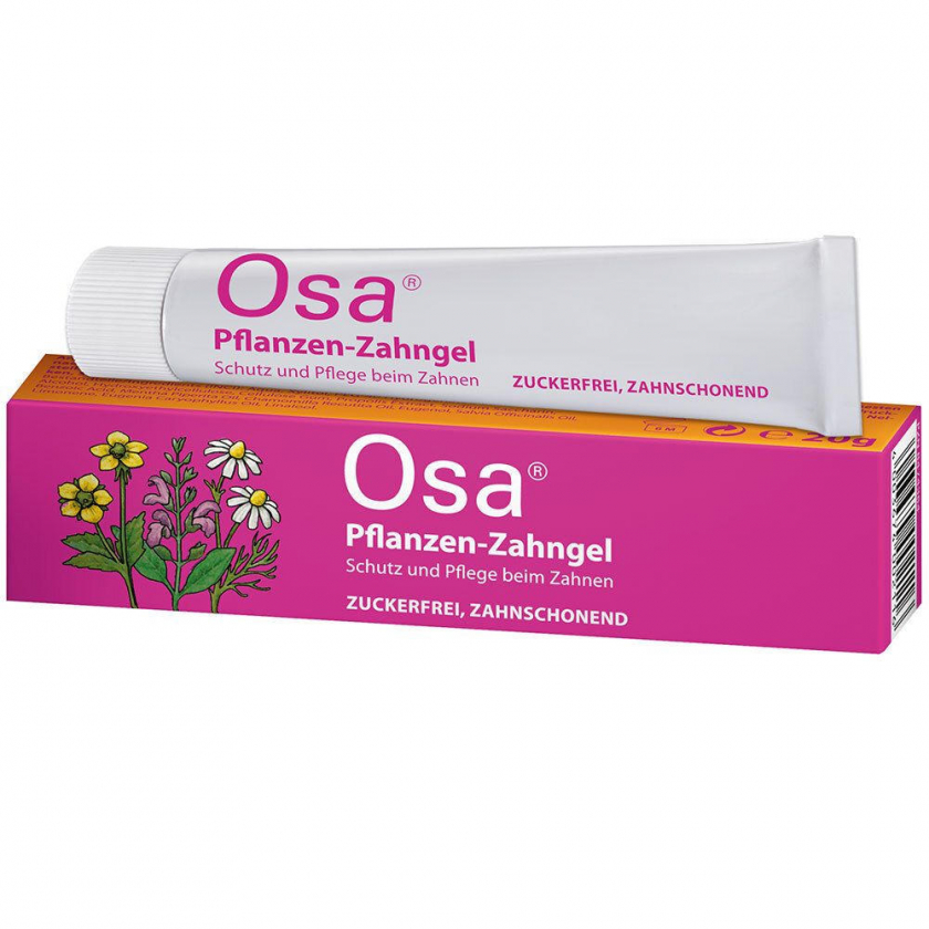 Osa® Pflanzen-Zahngel - растительный зубной гель для облегчения прорезывания зубов у детей. Охлаждает, успокаивает и ухаживает за раздраженными деснами, защищает от воспалений. Подходит также взрослым для ухода за раздражениями в полости рта и деснами. Без сахара, с натуральными растительными компонентами.