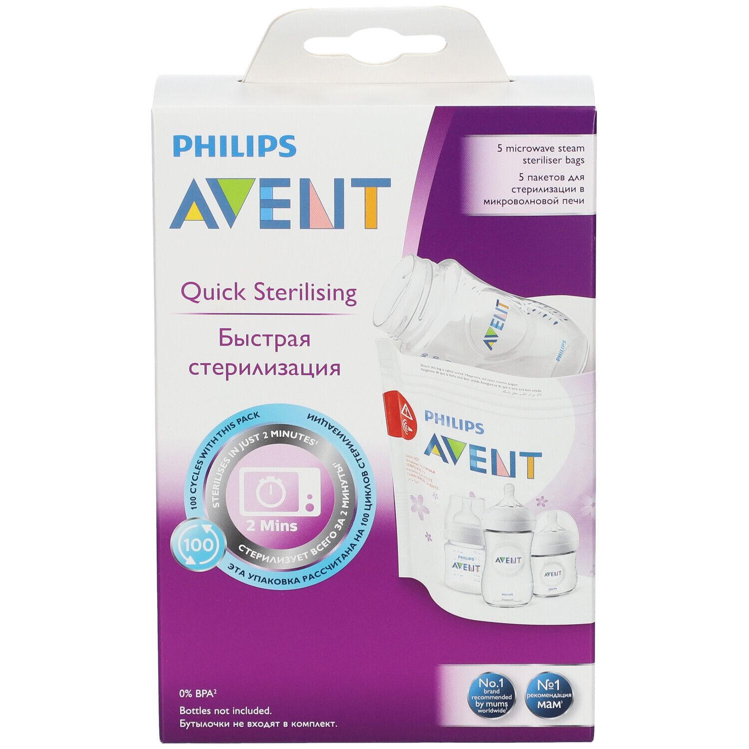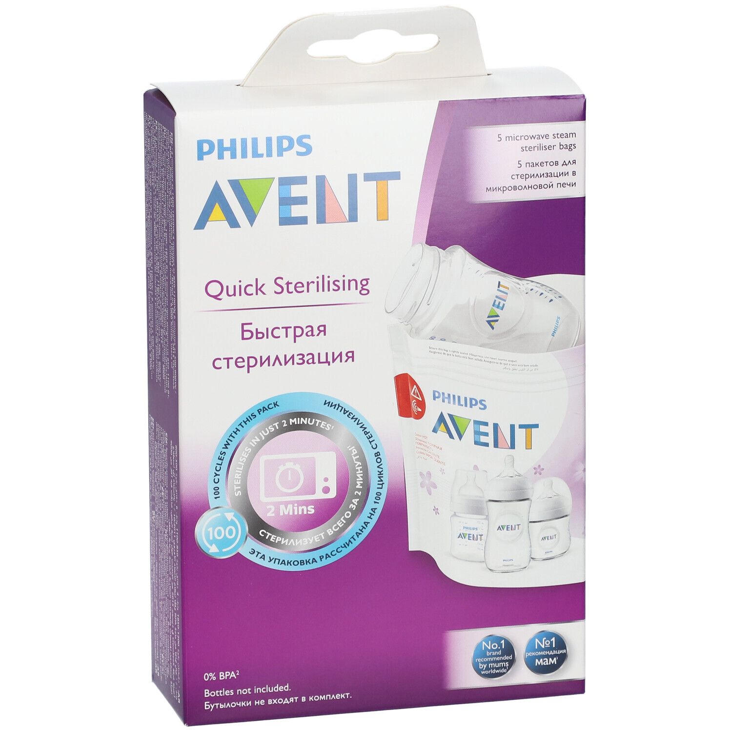 Стерилизационные пакеты Philips Avent для микроволновой печи - быстрый и эффективный способ стерилизации детских бутылочек, молокоотсосов и других принадлежностей. Каждый пакет можно использовать до 20 раз, удаляя 99,9% микробов и бактерий за 90 секунд. В упаковке 5 пакетов, что обеспечивает до 100 стерилизаций.