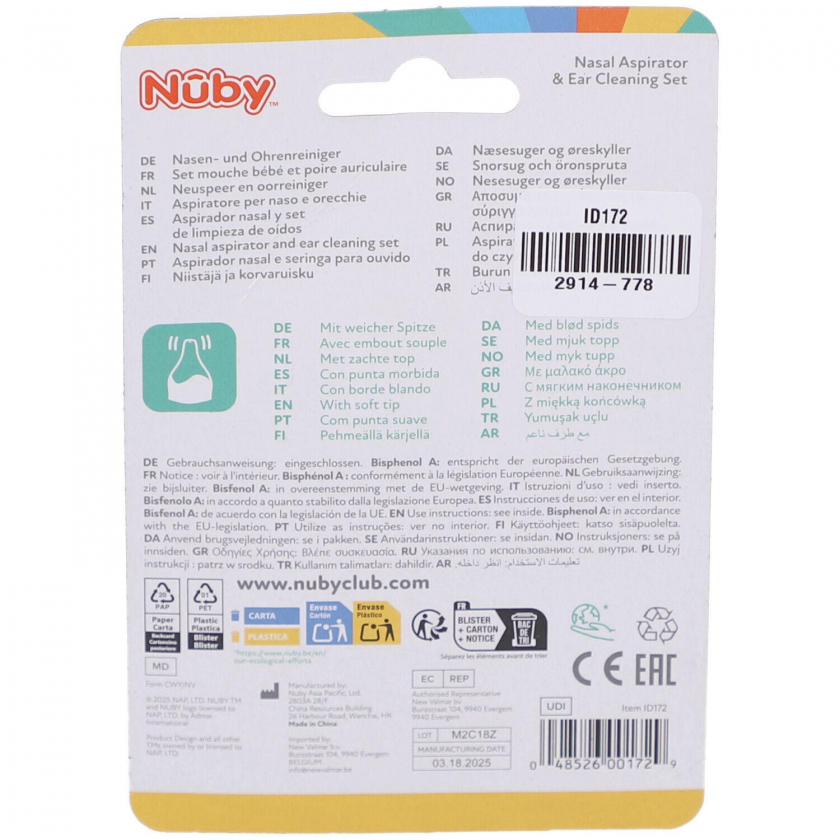 Nûby Baby Nasensauger - детский назальный аспиратор для новорожденных от 0 месяцев. Мягкая насадка защищает чувствительный нос ребенка, позволяет контролировать силу отсоса. Рекомендован педиатрами для очистки заложенного носа и удаления избыточной ушной серы. Легко чистится, имеет специальную насадку для преобразования в ушную грушу.