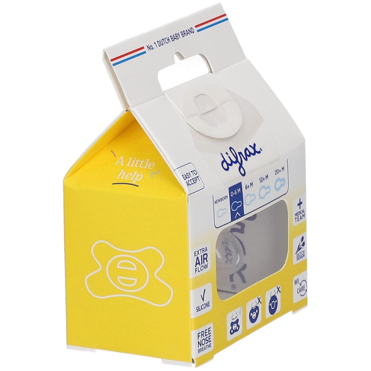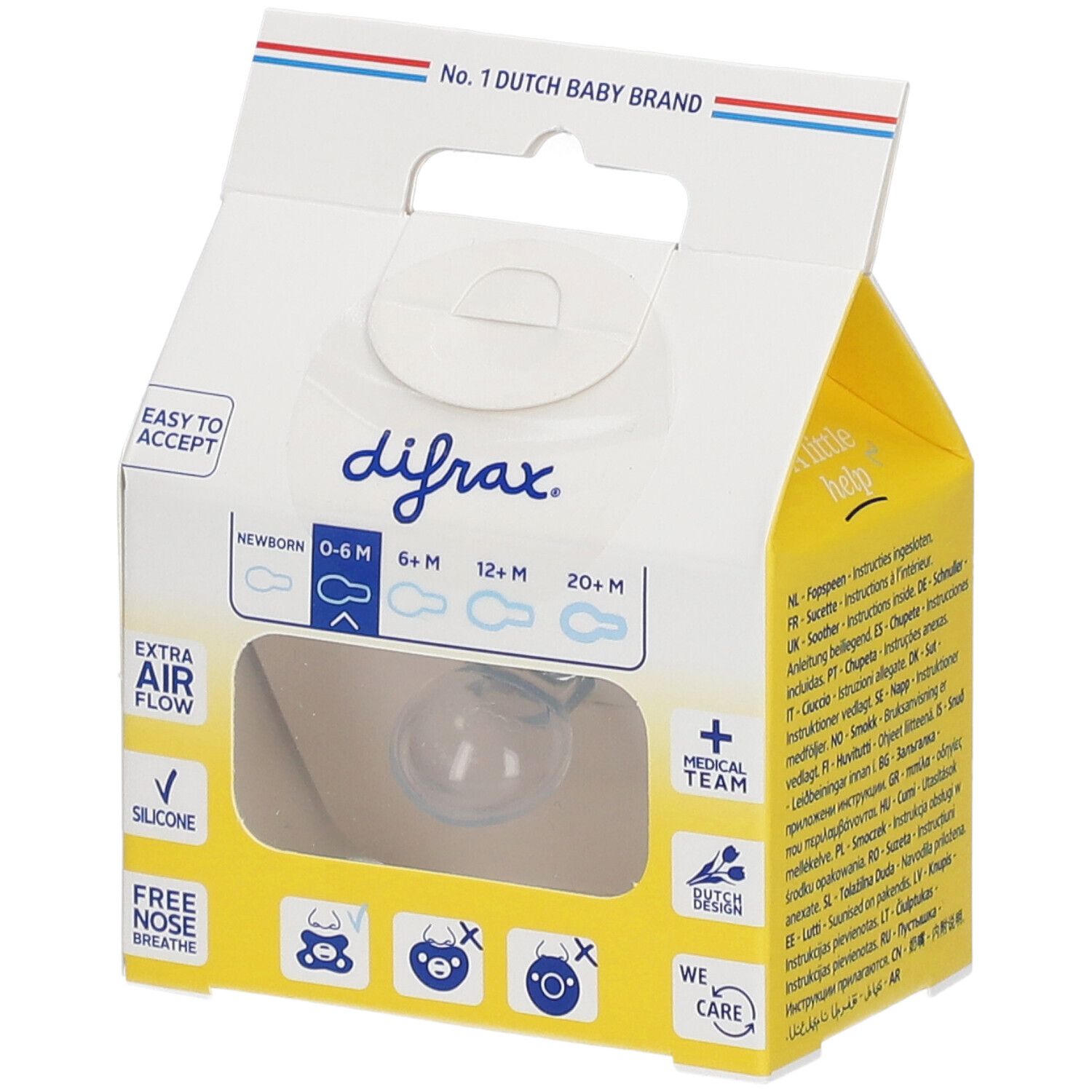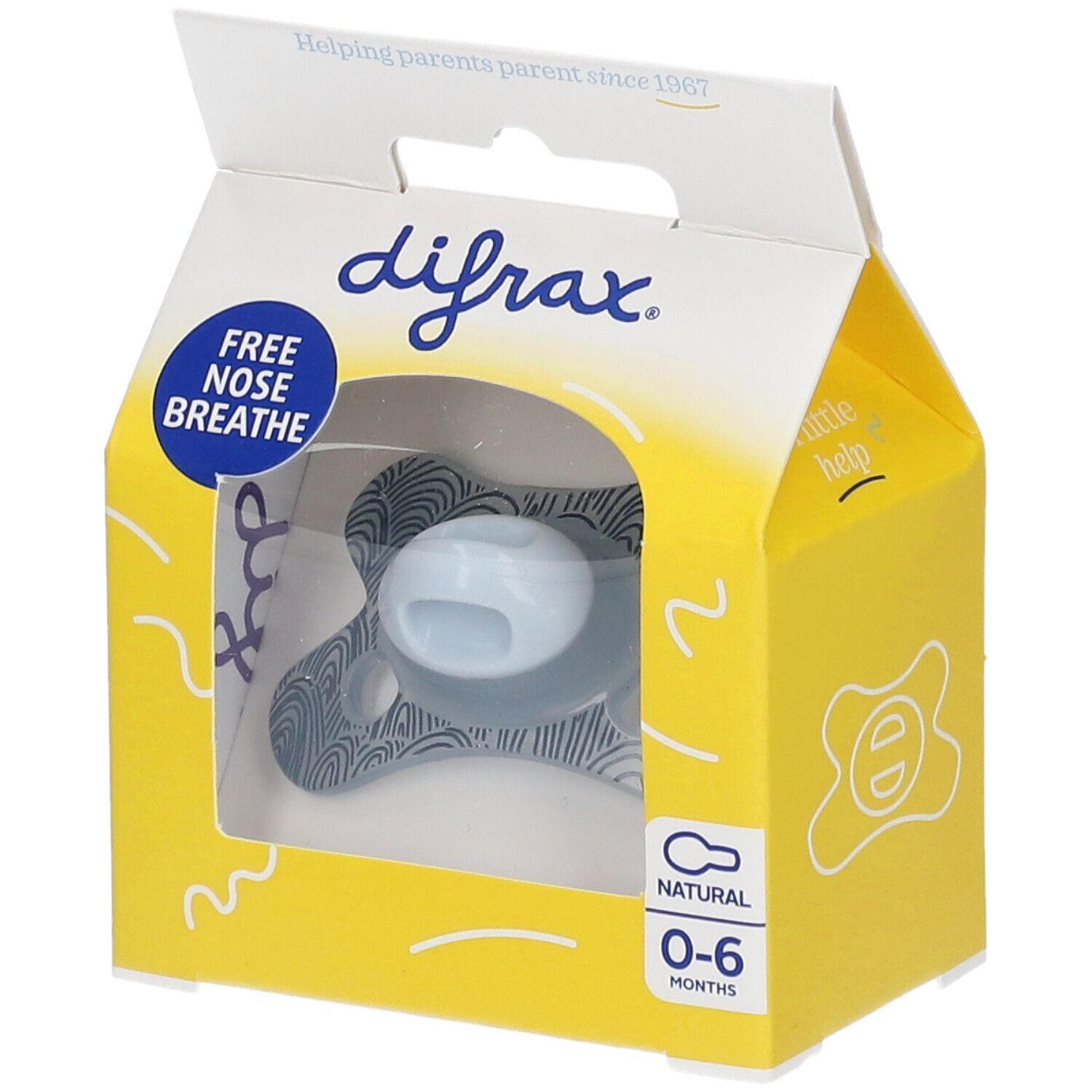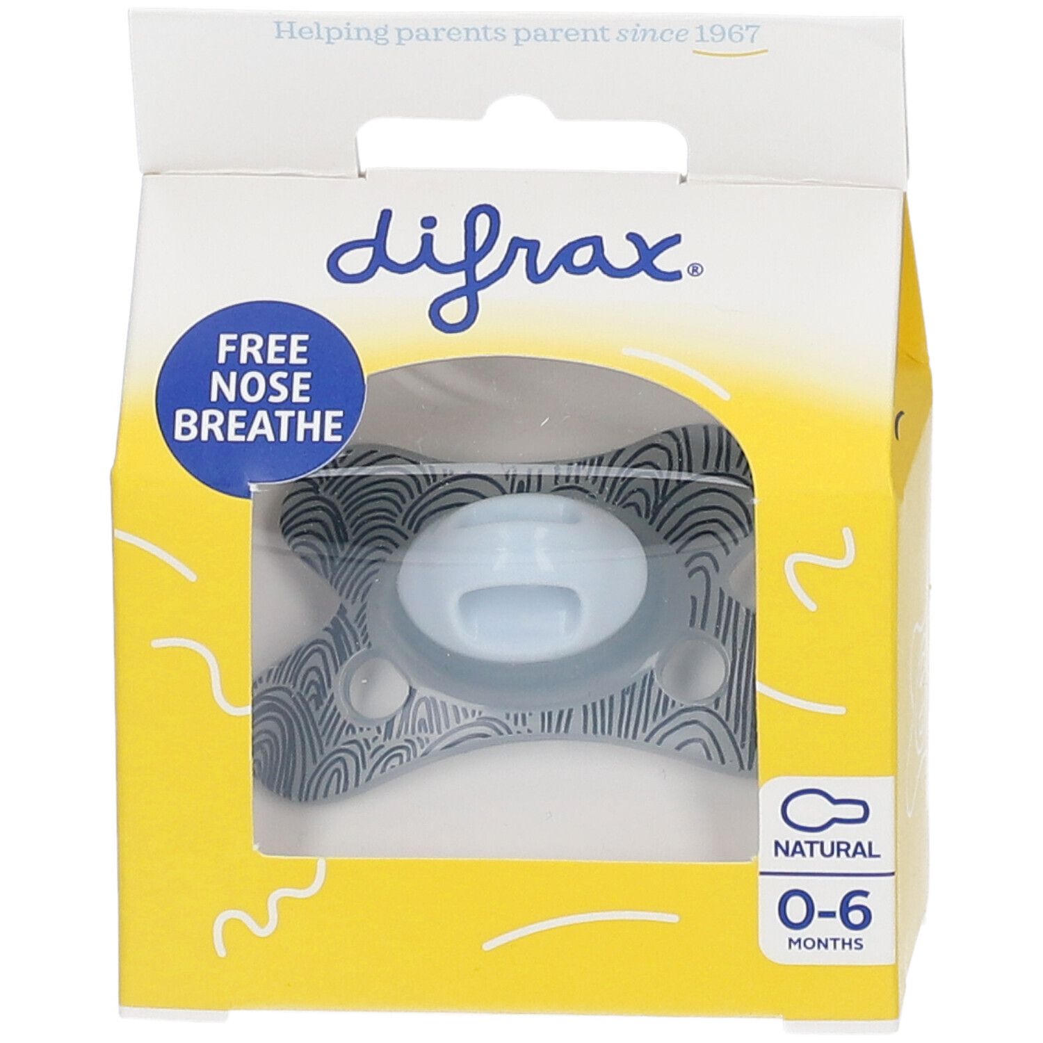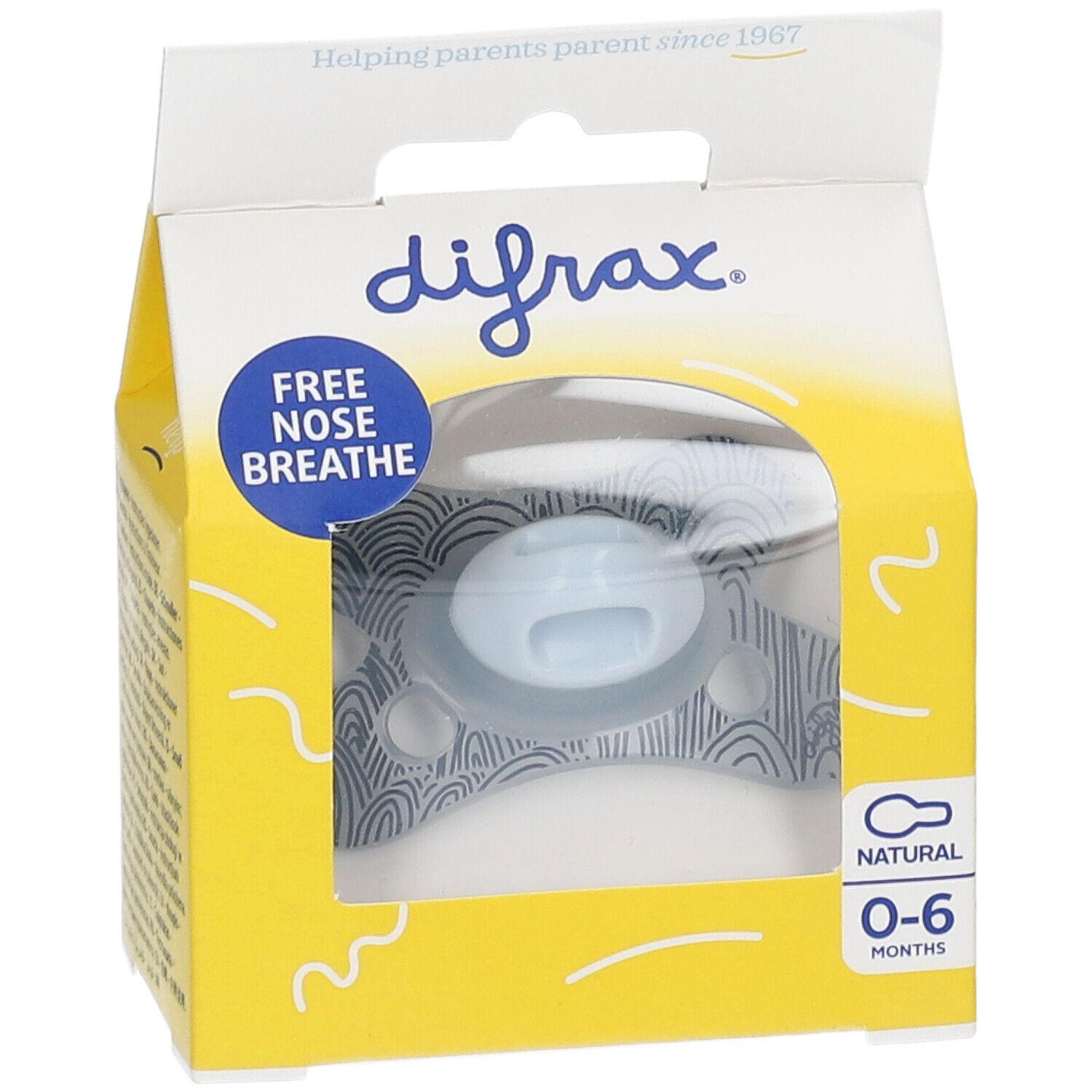 Силиконовая соска-пустышка difrax Natural для детей от 0 до 6 месяцев. Симметричная форма, разработана совместно с медиками, обеспечивает свободное дыхание через нос и предотвращает раздражение кожи благодаря отверстиям в щитке