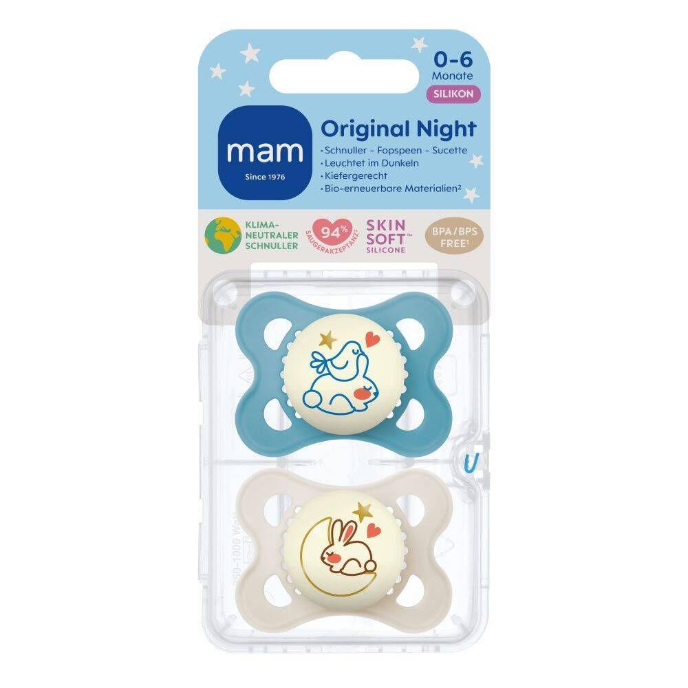 MAM Original Night Silikonschnuller 0-6 Monate, blau/creme
