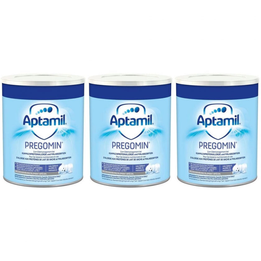 Специализированная детская смесь Aptamil Pregomin для младенцев с аллергией на белок коровьего молока. Содержит гидролизованный белок и пробиотический комплекс Syneo для диетического питания новорожденных с рождения. Производится в Германии компанией Milupa Nutricia.