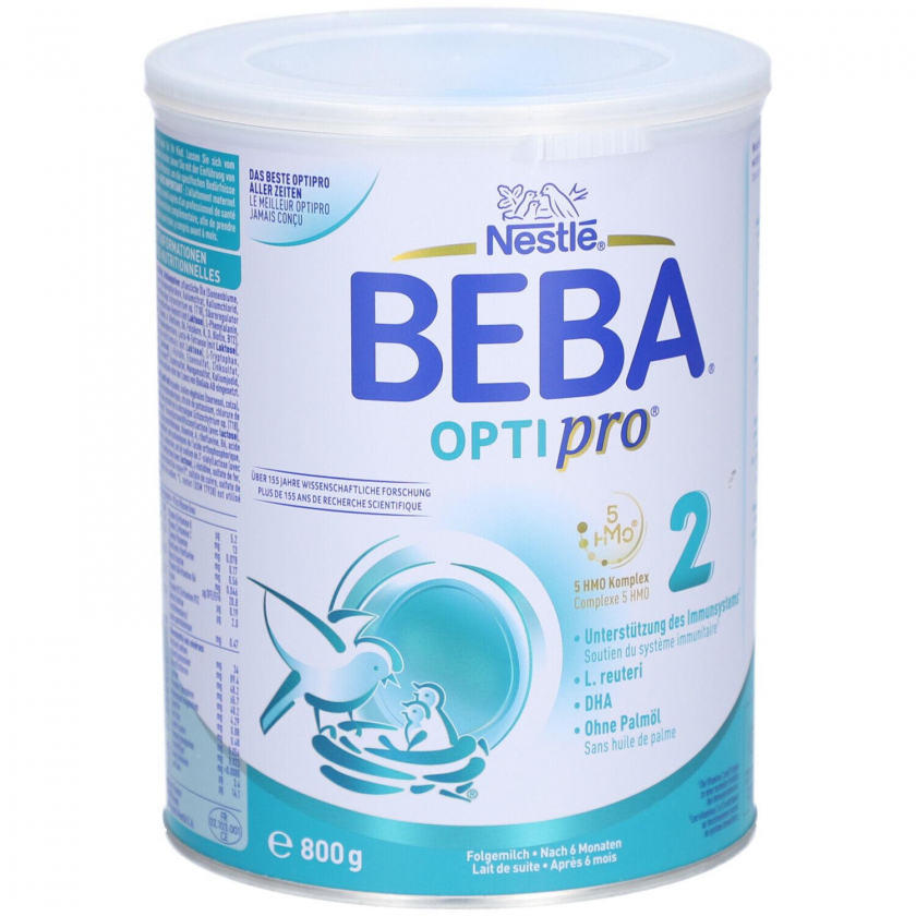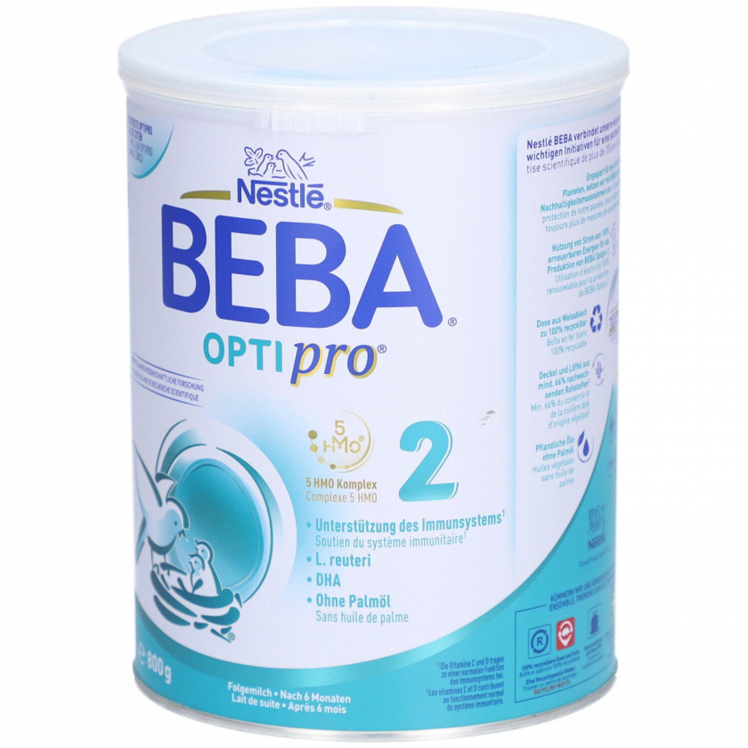 BEBA Optipro 2 - последующая молочная смесь для младенцев от 6 месяцев с L. reuteri, DHA и 5 HMO для поддержки иммунной системы. Содержит витамины C и D для нормального развития костей, без пальмового масла. 800 г.