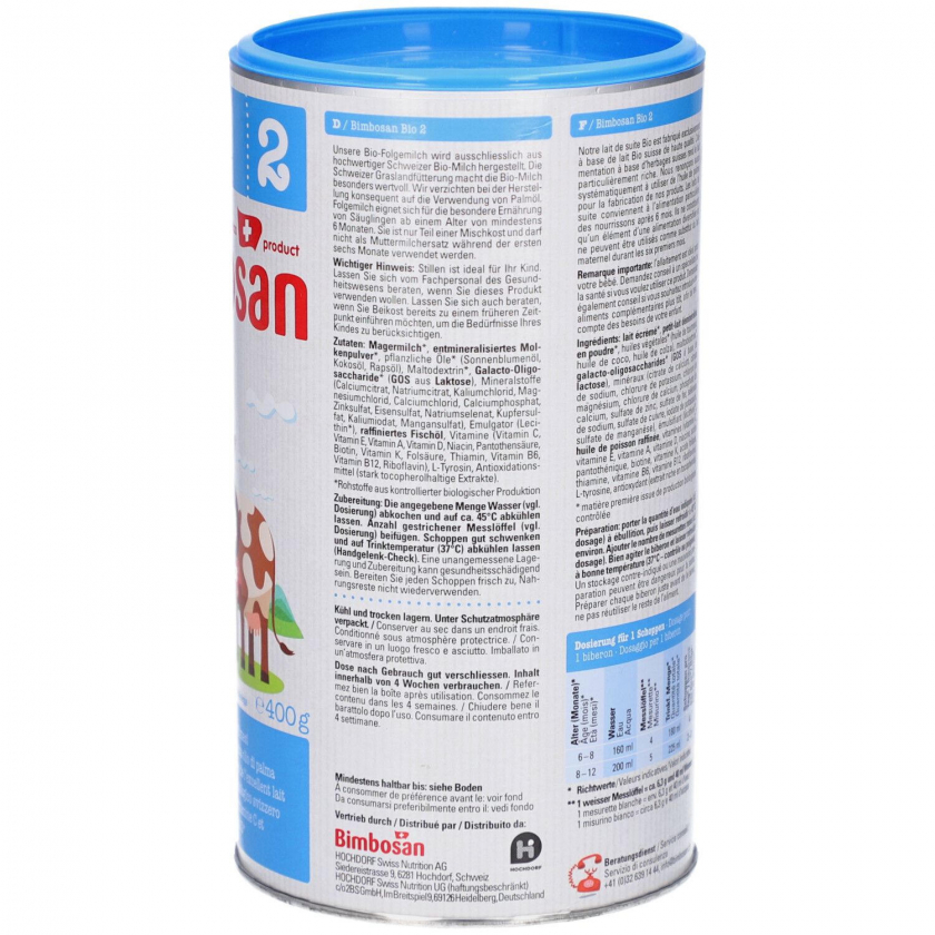 Bimbosan Bio 2 - органическая последующая молочная смесь для детей старше 6 месяцев. Содержит натуральные ингредиенты, витамины, минералы и пребиотики для здорового развития ребенка. Произведено в Швейцарии из экологически чистого сырья.
