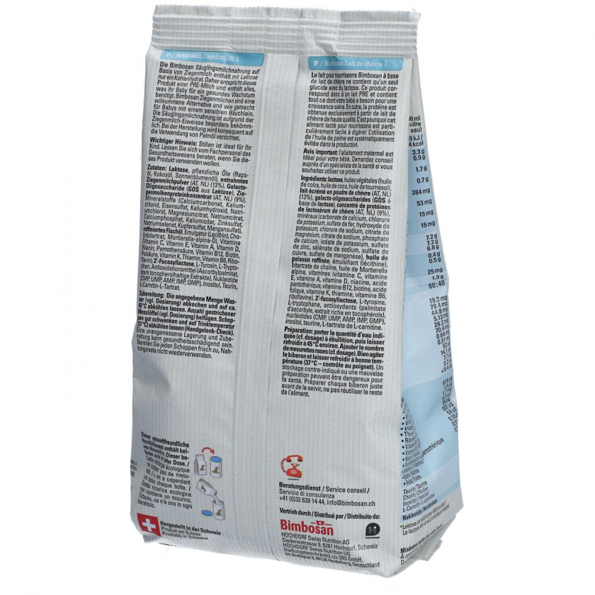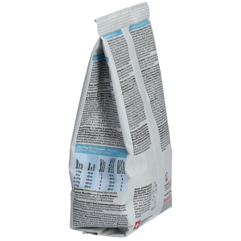 Bimbosan Ziegenmilch Säuglingsmilchnahrung PRE 1 - высококачественная начальная молочная смесь на основе козьего молока для новорожденных с рождения. Содержит ДГК для здорового развития, без пальмового масла, способствует мягкому пищеварению. Подходит для детей с первых дней жизни.