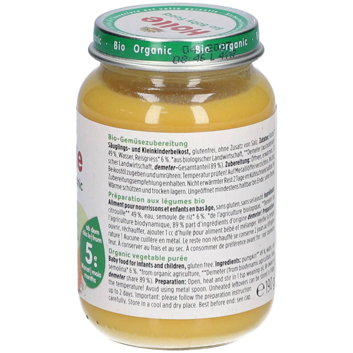 Органическое детское питание Holle Bio Kürbis mit Reis - овощное пюре с тыквой и рисом для детей от 4 месяцев. Без сахара, глютена, яиц, соли и молочного белка. Подходит для начала прикорма, имеет гипоаллергенные свойства и способствует нормализации стула.