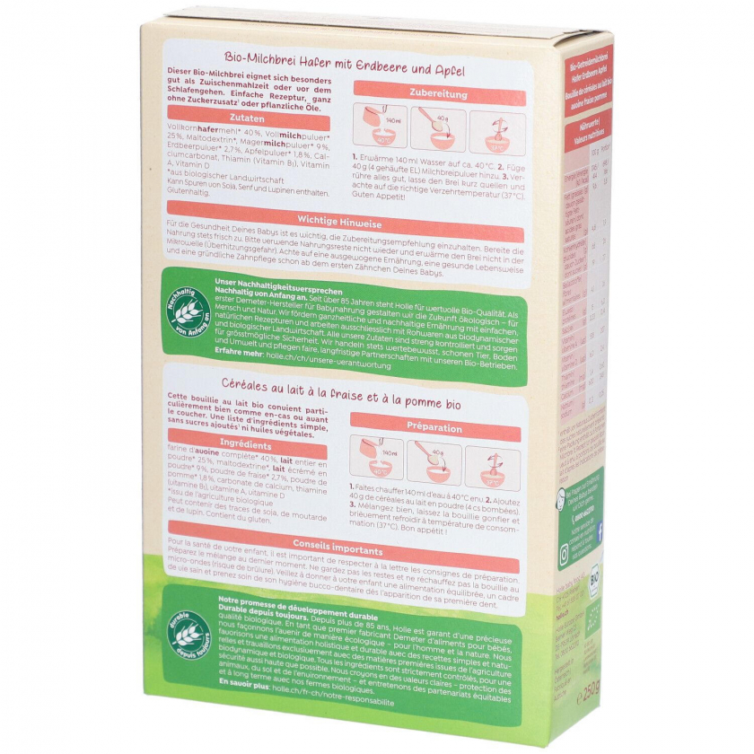 Holle Bio Milchbrei Hafer Erdbeere mit Apfel ab dem 6. Monat