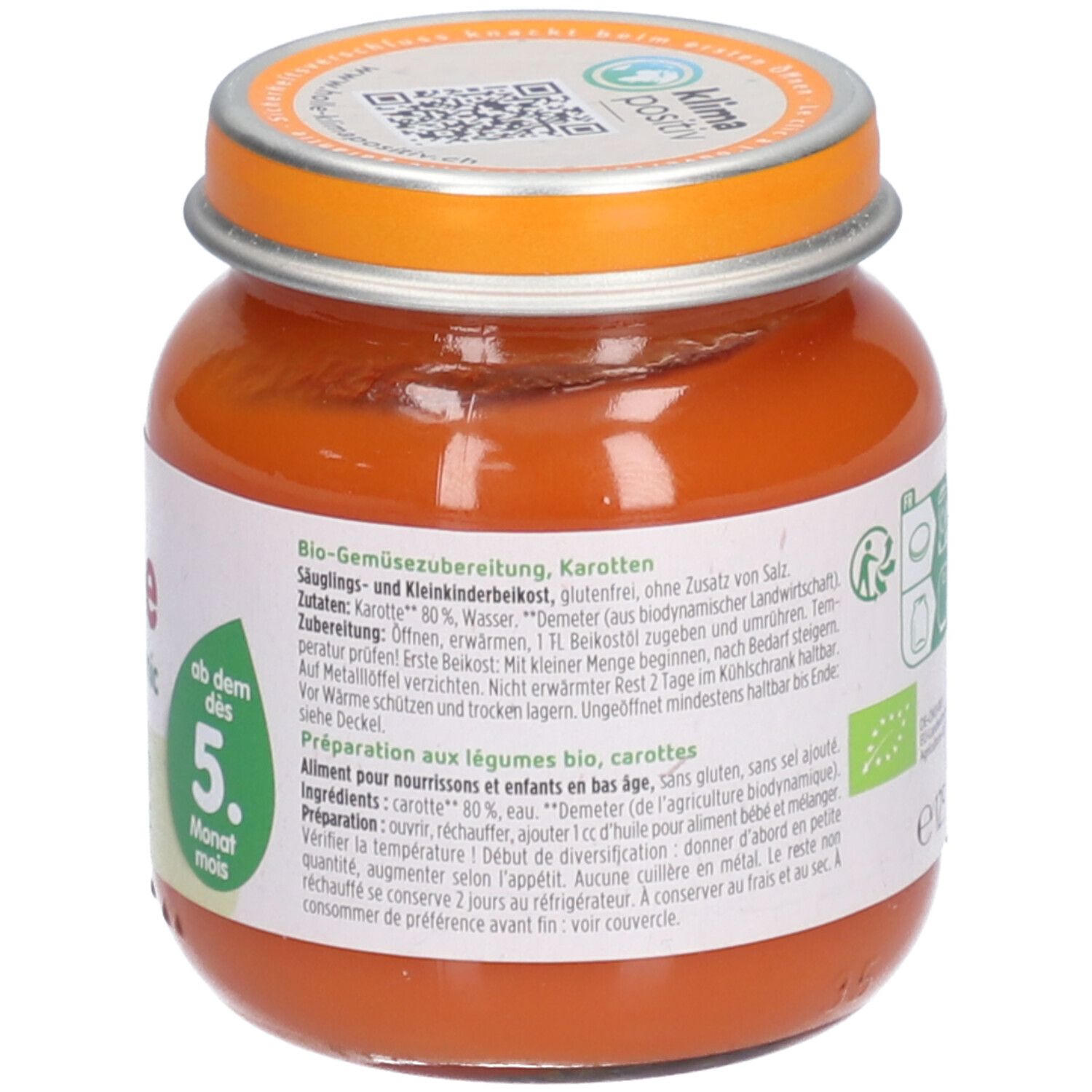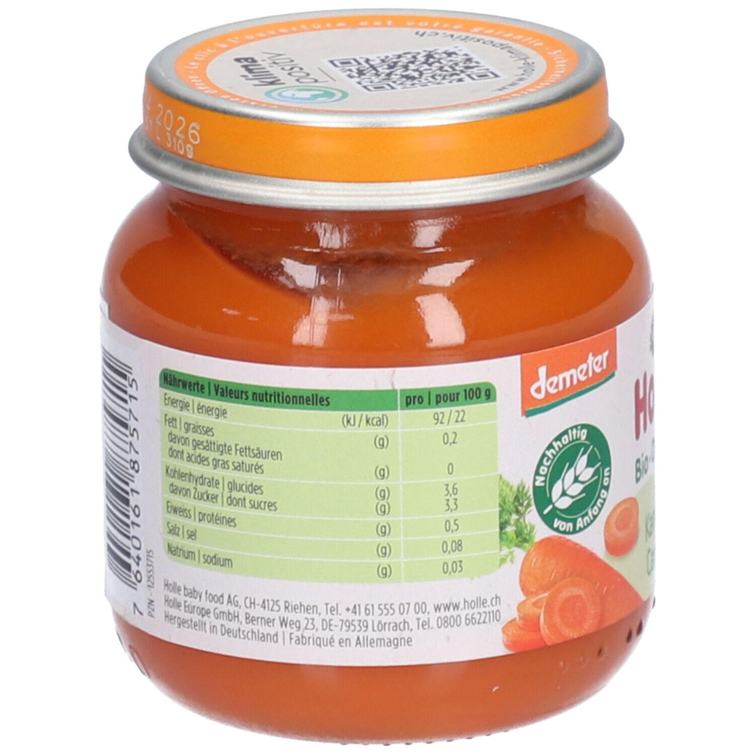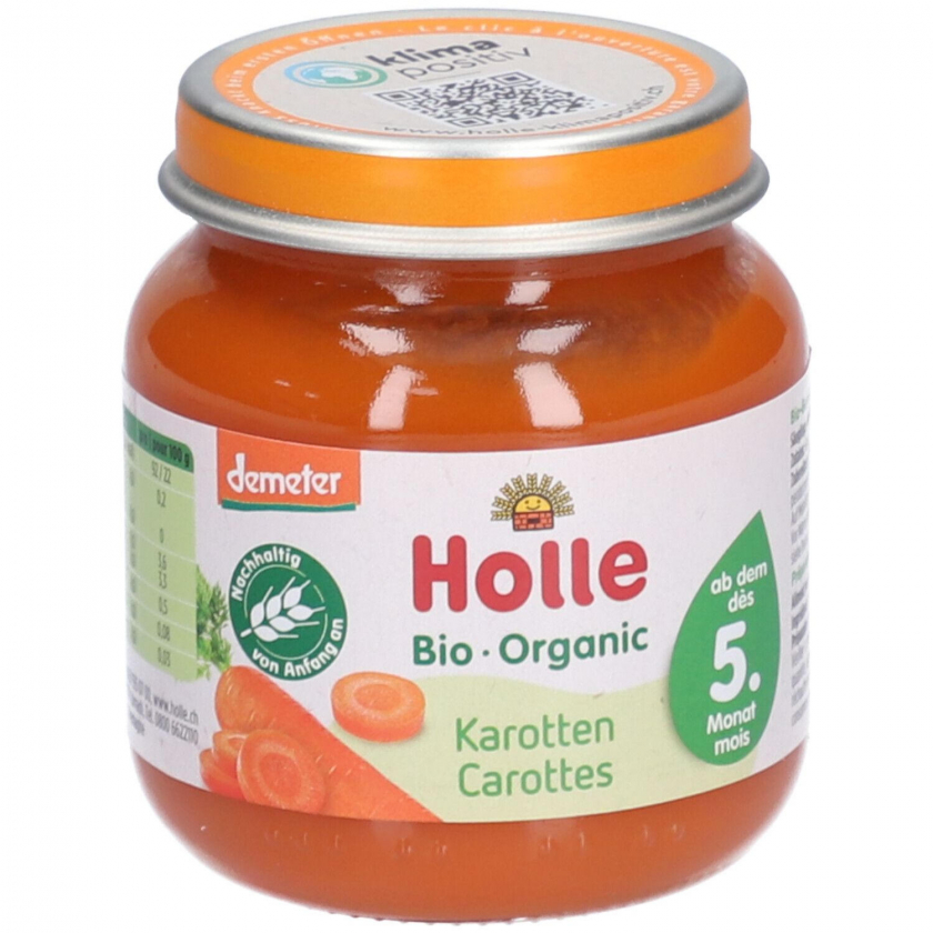 Детское питание Holle Carottes - органическое пюре из моркови для начала прикорма. Изготовлено из биодинамических ингредиентов Demeter, подходит для первого знакомства с твердой пищей. Готово к употреблению, без добавления сахара и консервантов.