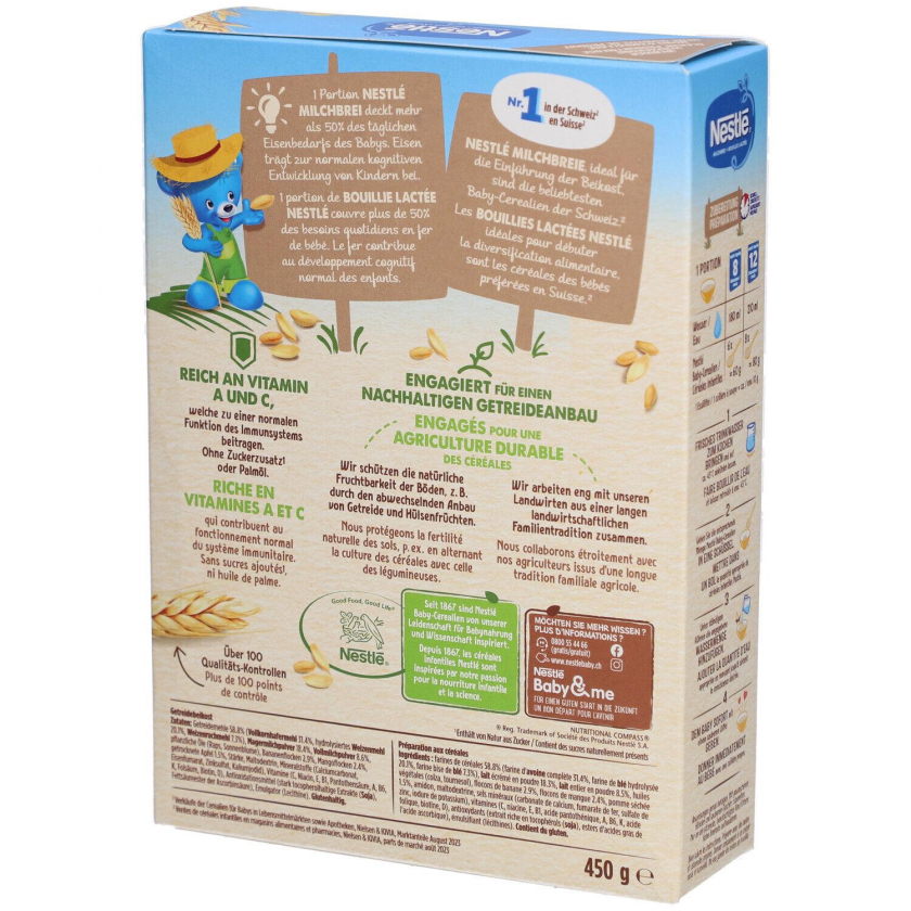 Состав: Зерновые муки 58.8% (цельнозерновая овсяная мука 31.4%, гидролизованная пшеничная мука 20.1%, пшеничная мука 7.3%), сухое обезжиренное молоко 18.4%, сухое цельное молоко 8.6%, растительные масла (рапсовое, подсолнечное), банановые хлопья 2.9%, манговые хлопья 2.4%, сушеные яблоки 1.5%, крахмал, мальтодекстрин, минералы (карбонат кальция, фумарат железа, сульфат цинка, йодид калия), витамины (C, ниацин, E, B1, пантотеновая кислота, A, B6, K, фолиевая кислота, биотин, D), антиоксиданты (экстракты с высоким содержанием токоферола [соя], аскорбилпальмитат), эмульгатор (лецитины). Аллергены: соевые бобы, молоко, овес, пшеница и продукты, содержащие глютен.