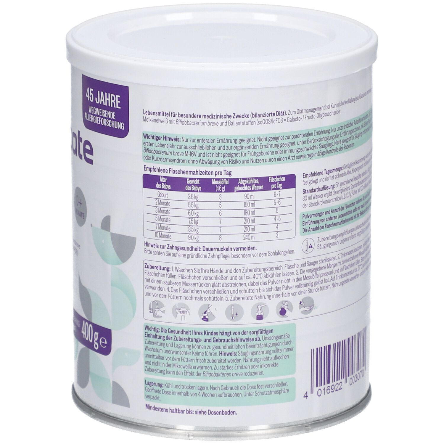 Гипоаллергенная специализированная смесь для новорожденных с аллергией на белок коровьего молока. Содержит гидролизованный сывороточный белок, пребиотики и пробиотик Bifidobacterium breve M-16V. Предназначена для диетического питания под врачебным контролем