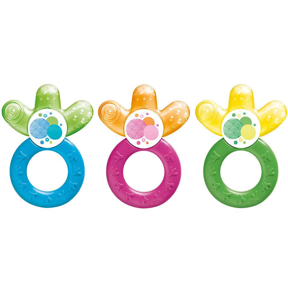 MAM Cooler Beißring - охлаждающий прорезыватель для зубов с водным элементом, который помогает облегчить дискомфорт при прорезывании зубов у младенцев от 4 месяцев. Имеет 5 различных текстур для массажа десен и уникальную форму, достигающую задних зубов.