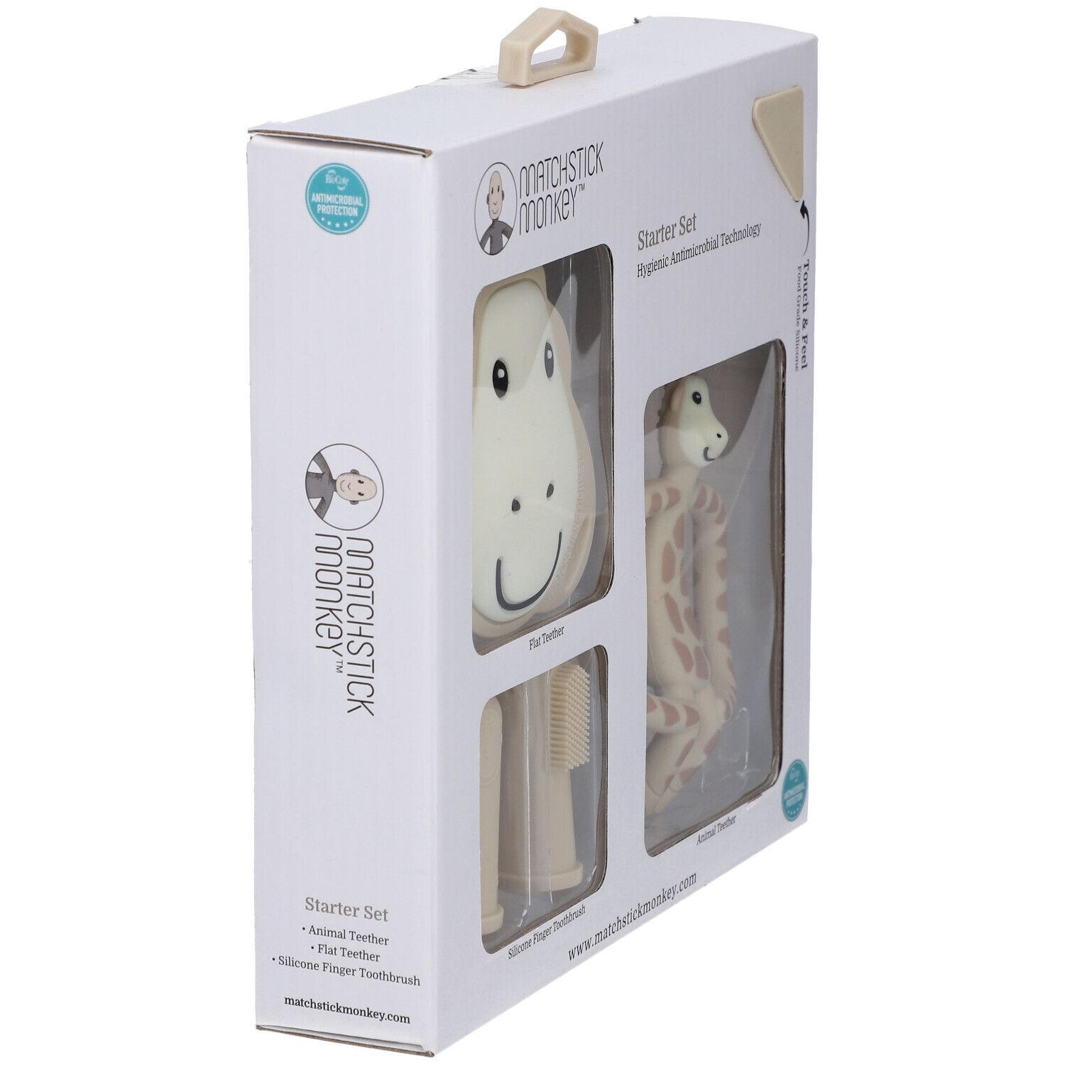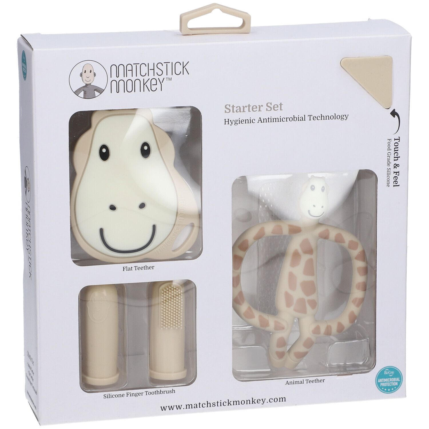 Набор прорезывателей MATCHSTICK MONKEY™ в виде жирафа для детей от 3 месяцев. Изготовлен из пищевого силикона, имеет различные текстуры для массажа десен, способствует развитию моторики, легко моется и стерилизуется.