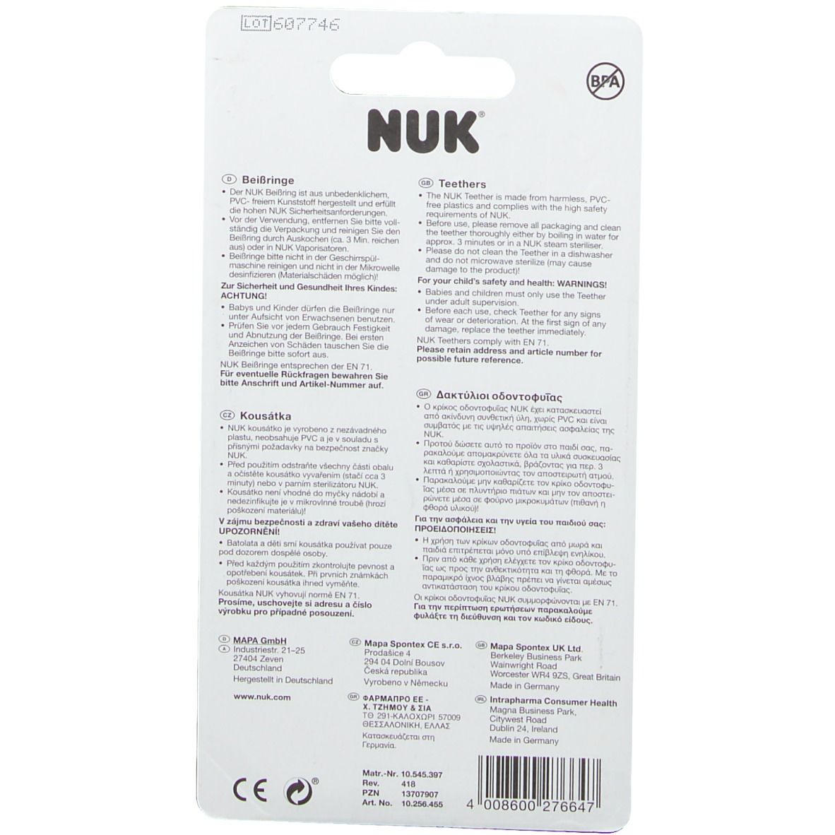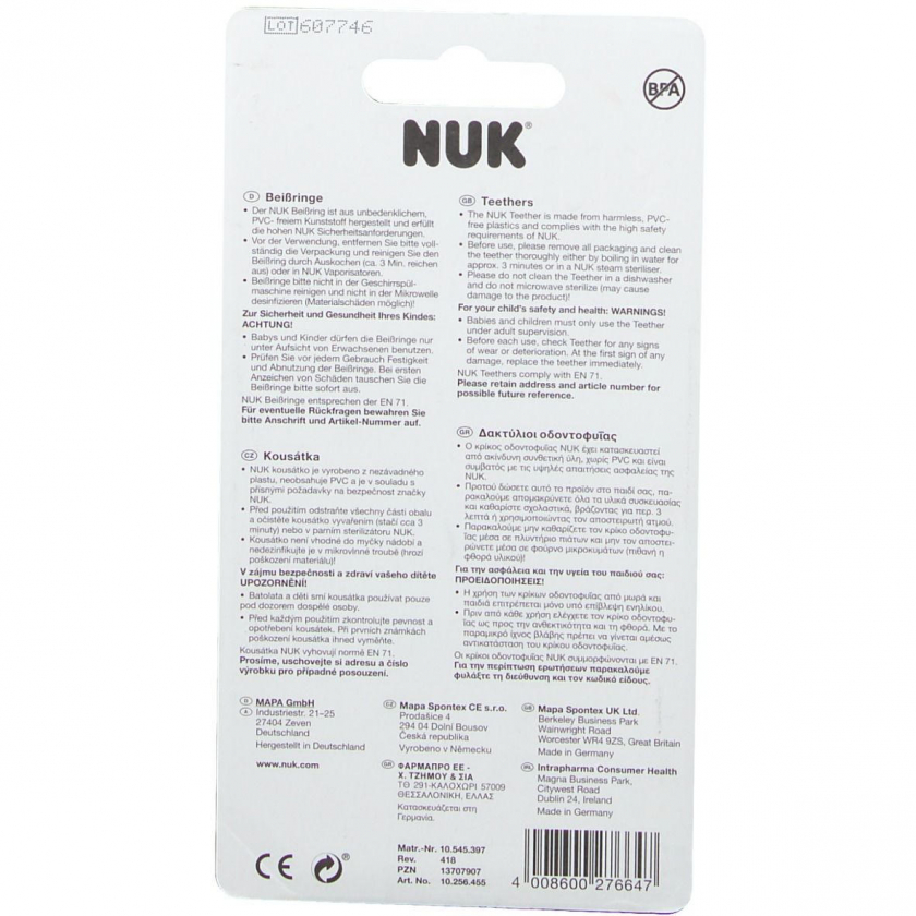 Набор прорезывателей NUK® из безопасного пластика без ПВХ, состоящий из мягкого и твердого колец для облегчения дискомфорта при прорезывании зубов у младенцев