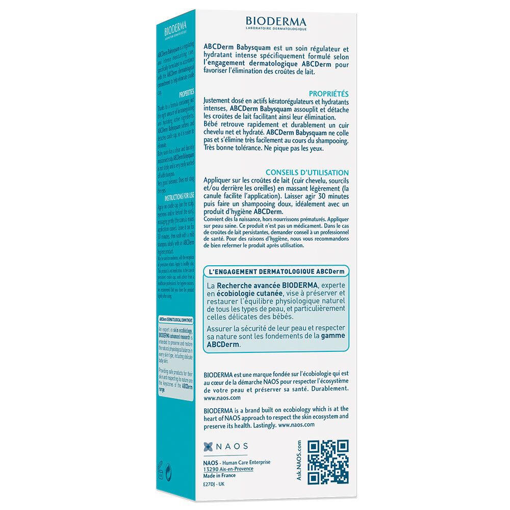 Bioderma ABCDerm Babysquam - специальный крем для лечения молочных корочек у младенцев. Бережно удаляет себорейные корочки, увлажняет и защищает нежную кожу головы ребенка. Имеет нелипкую текстуру, легко смывается и не щиплет глаза