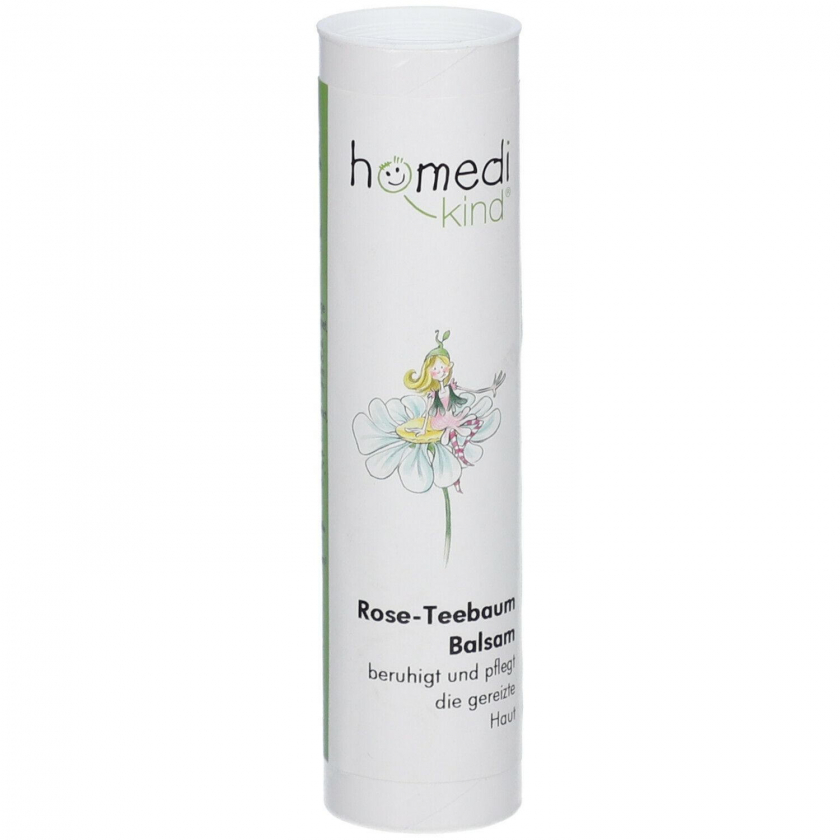 homedi-kind® Rose-Teebaum Balsam - универсальное средство для ухода за проблемной кожей, содержащее комбинацию гидролатов бессмертника, розы и чайного дерева с эфирными маслами лаванды, мануки, розы и чайного дерева. Подходит для ежедневного ухода за кожей взрослых и детей, включая младенцев.