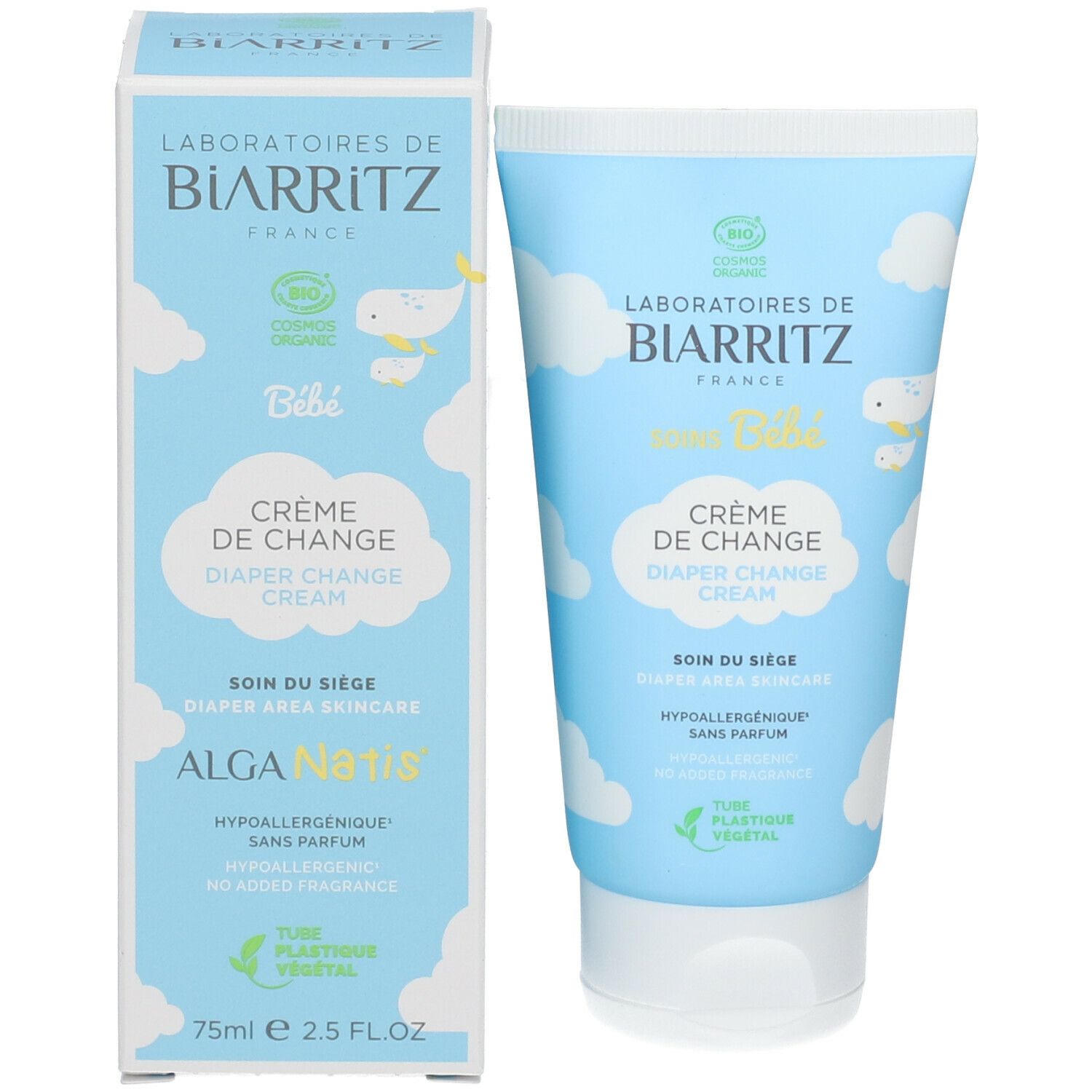 Гипоаллергенный крем от Laboratoires de Biarritz для ухода за кожей в области подгузника у детей. Создает защитный барьер, предотвращает покраснения, успокаивает и восстанавливает раздраженную кожу. Без отдушек, содержит эксклюзивные компоненты Alga-Paisium и Alga-Sendatu® для регенерации кожи.