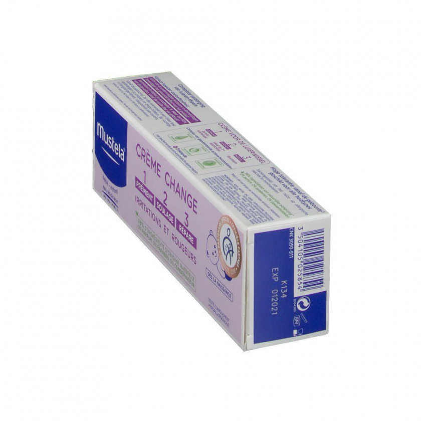 Mustela® bébé Wickelcreme 1-2-3 - детский крем для смены подгузников с тройным действием. Защищает, успокаивает и восстанавливает кожу младенца с рождения. Содержит 98% ингредиентов натурального происхождения, гипоаллергенный, без отдушек и консервантов.