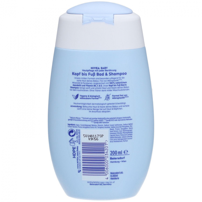 Мягкое 2-в-1 средство NIVEA® BABY для купания и мытья волос младенцев. Гипоаллергенная формула с натуральным миндальным маслом и витаминами B5, C, E бережно очищает кожу и волосы, сохраняя естественную влажность. Подходит для чувствительной детской кожи, не содержит слез, веганское, биоразлагаемое, без микропластика, минеральных масел и парабенов.