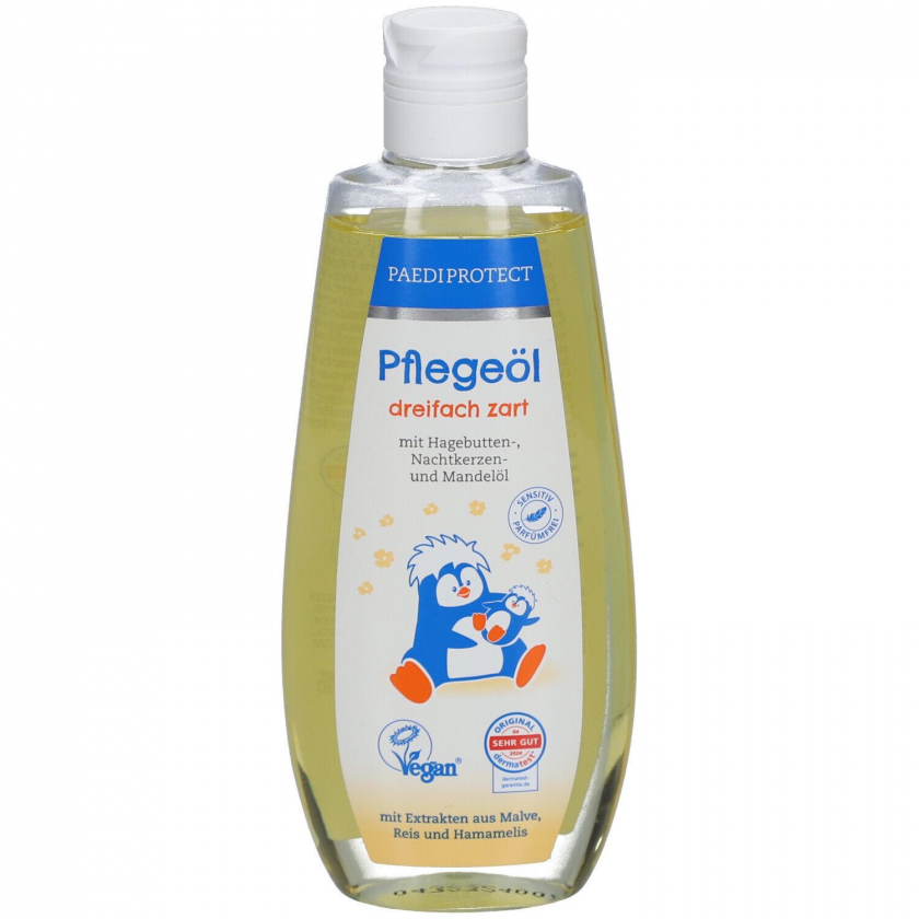 Нежное масло для ухода Paediprotect с тройным действием для чувствительной кожи младенцев и детей. Содержит масла шиповника, примулы вечерней и миндаля. Без парфюма, минеральных масел и силиконов. Подходит для нежного массажа, ухода за кожей и профилактики раздражений. Дерматологически протестировано. Также подходит для взрослых с чувствительной или сухой кожей и для ухода во время беременности.