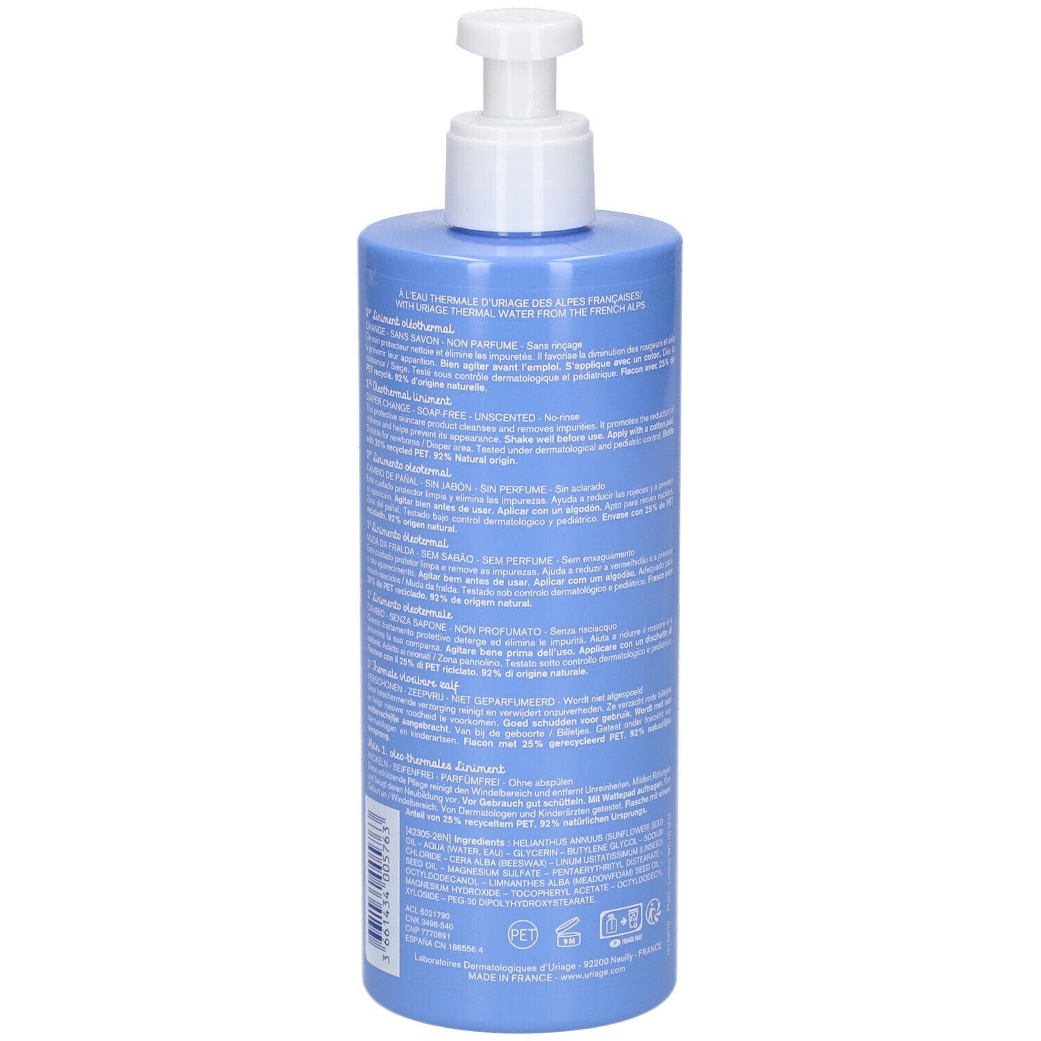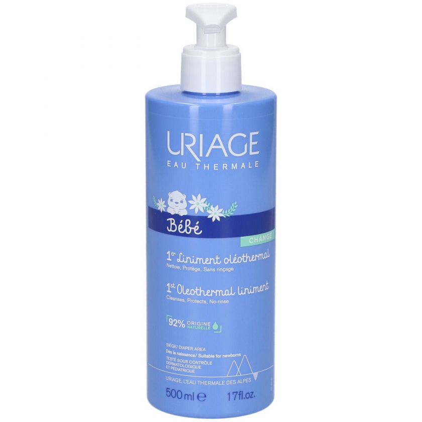 Защитное масло для ухода за кожей новорожденных Uriage Baby 1st Liniment Oleothermal. Очищает кожу, удаляет загрязнения, снимает покраснения и предотвращает раздражения. Объем 500 мл.
