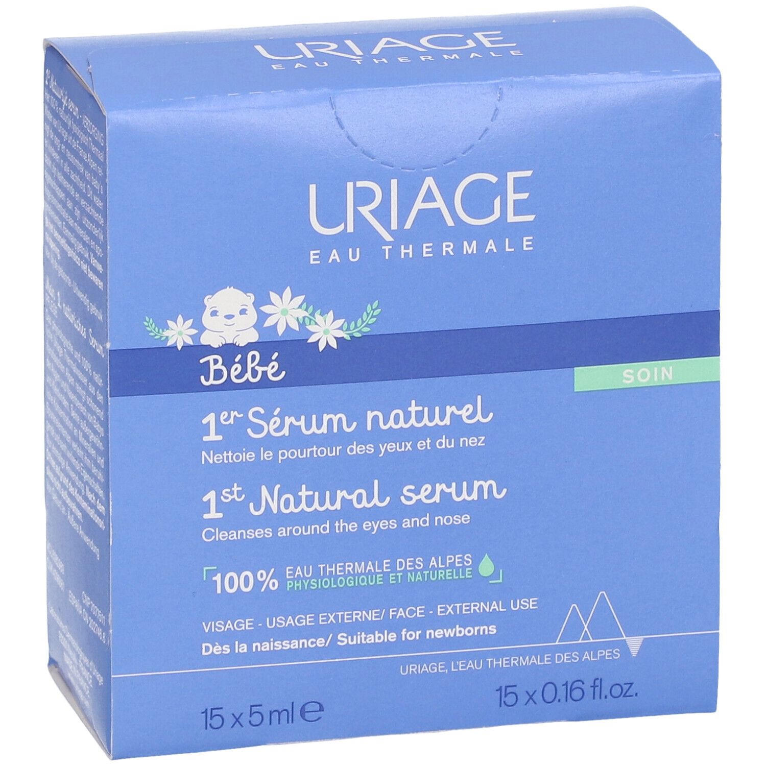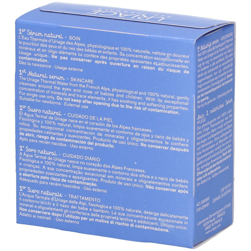 URIAGE Baby 1st Natural Serum - натуральная термальная вода из французских Альп для бережного очищения глаз и носа у младенцев и детей. Обладает успокаивающими и смягчающими свойствами благодаря высокой концентрации минералов и микроэлементов. Подходит для всех типов кожи.