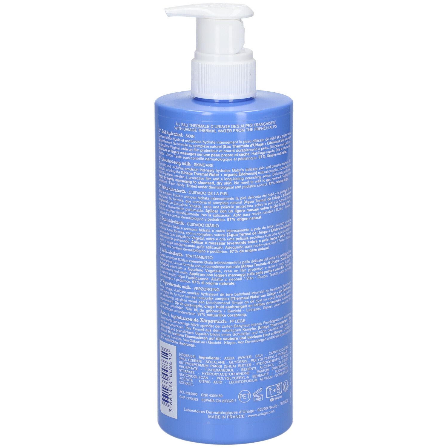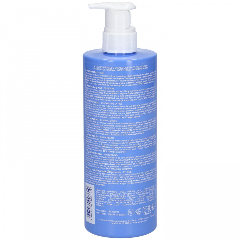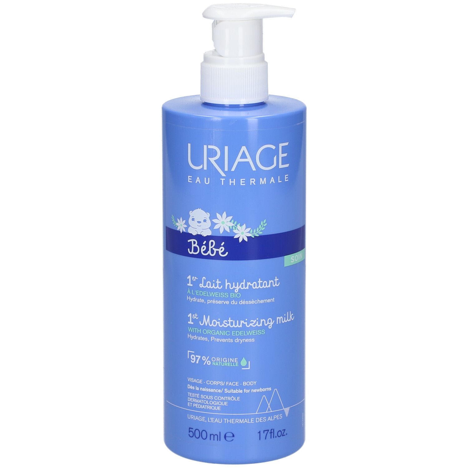 Увлажняющее молочко для ухода за нежной кожей младенцев. Содержит комплекс термальной воды Uriage и био-эдельвейса, интенсивно увлажняет, защищает от сухости и образует защитный барьер. Имеет нежирную легкую текстуру, подходит для ежедневного использования.