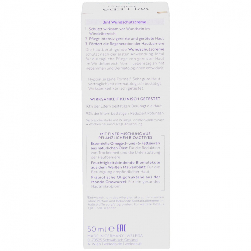Weleda Baby Med 3in1 Wundschutzcreme - защитный крем от опрелостей для высокочувствительной и очень сухой кожи младенцев. Содержит экстракт белой мальвы, масло вечерней примулы и натуральные компоненты. Надежно защищает от опрелостей, успокаивает раздраженную кожу, уменьшает покраснения и раздражения, поддерживает естественные функции кожи. Без отдушек и алкоголя, гипоаллергенный, сертифицирован ECARF.