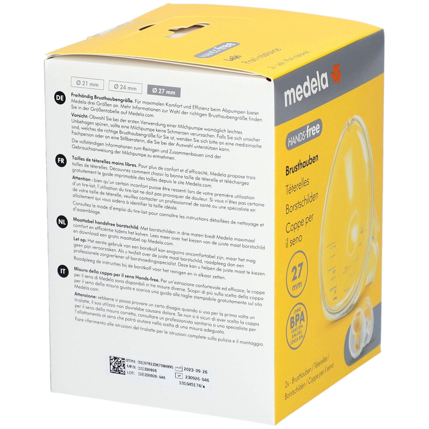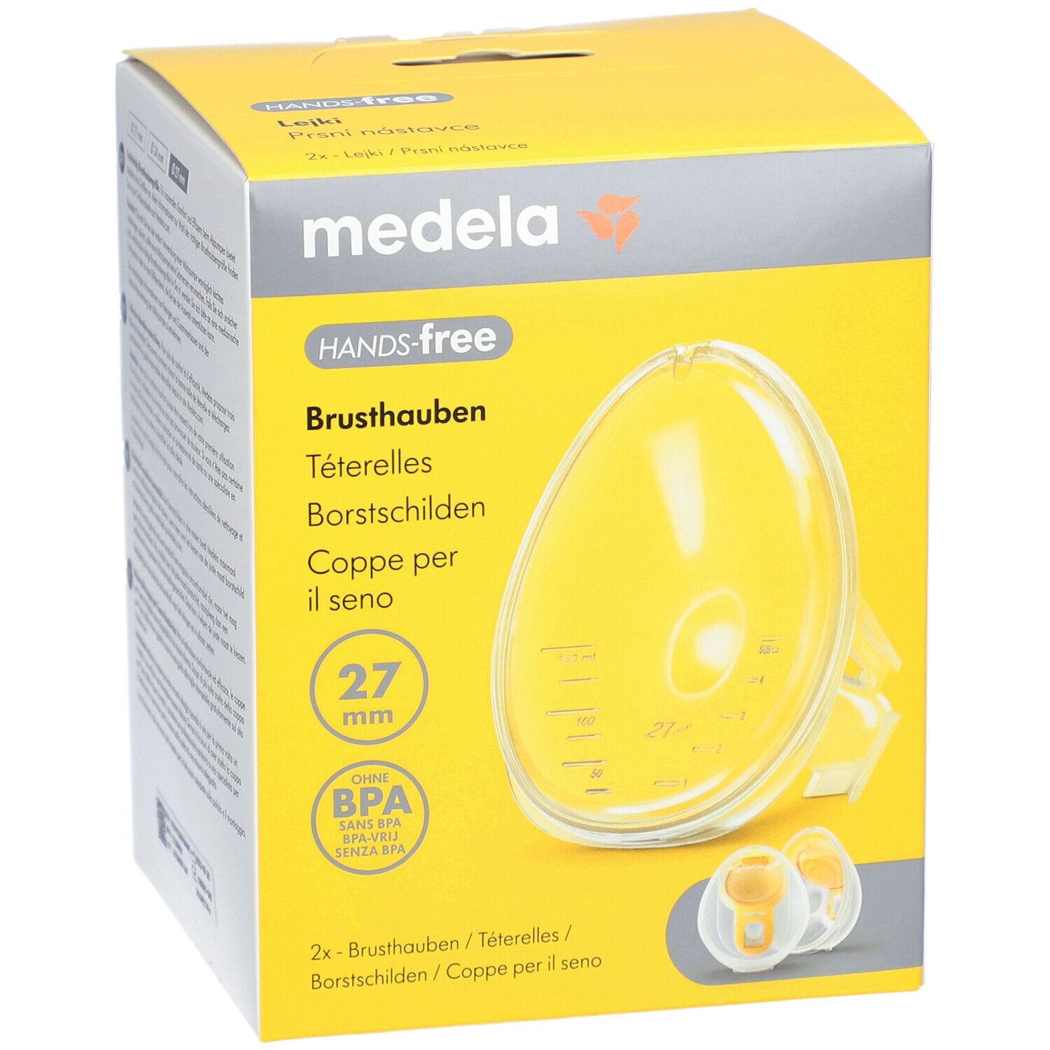 Freestyle™ Hands-free Brusthauben - специальные насадки для молокоотсоса Medela Freestyle™ размером 27 мм. Обеспечивают комфортное и эффективное сцеживание благодаря углу раскрытия 105°, который снижает давление на ткань груди и максимизирует поток молока. Изготовлены из безопасного пищевого пластика без BPA, латекса и фталатов. В комплекте 2 насадки.