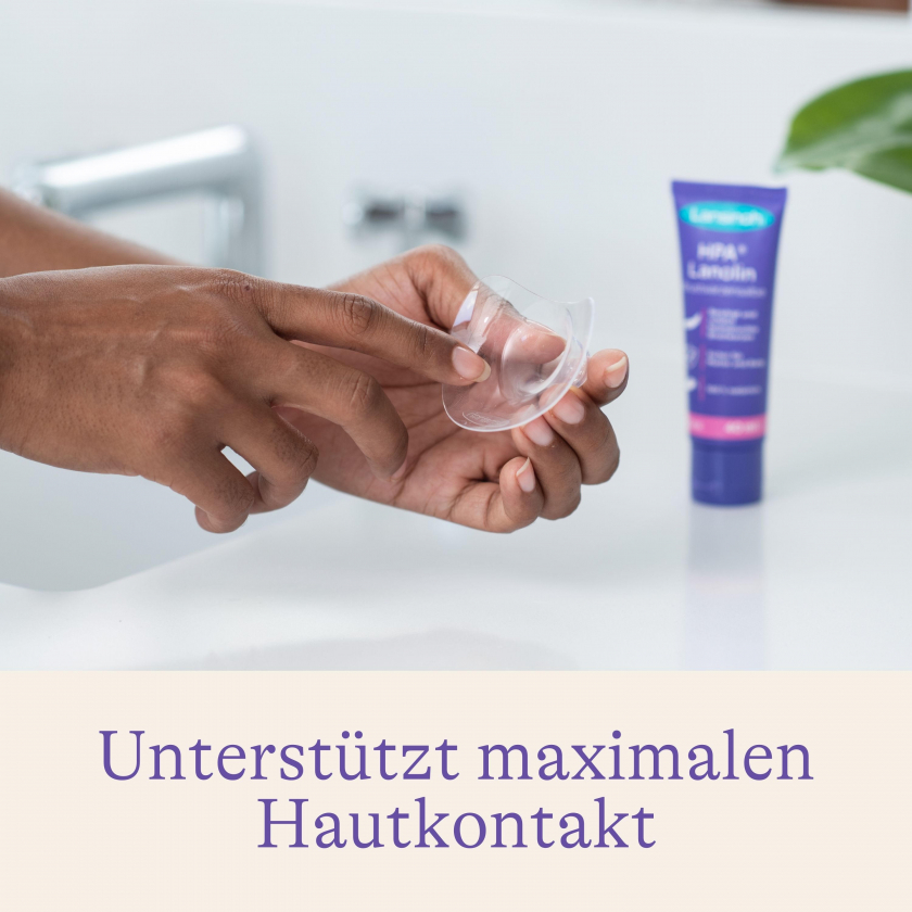 Lansinoh® Stillhütchen 20 mm - силиконовые накладки для груди, предназначенные для временного использования при трудностях с грудным вскармливанием. Помогают при плоских сосках, сильном рефлексе выделения молока и других проблемах. Обеспечивают максимальный контакт кожи матери и ребенка, изготовлены из мягкого гибкого силикона без вредных веществ.