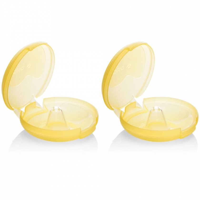 Медицинские силиконовые накладки на грудь Medela Contact™ для помощи при грудном вскармливании. Помогают при плоских или втянутых сосках, защищают чувствительную кожу. Размер S (16 мм), в наборе 2 шт. с контейнером для хранения.