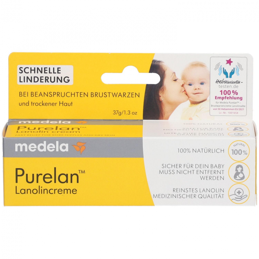 Крем для сосков Medela Purelan 100 из 100% натурального ланолина для ухода за чувствительными или сухими сосками кормящих матерей и сухой кожей младенцев. Не требует смывания перед кормлением, не содержит искусственных добавок, парфюма и консервантов.