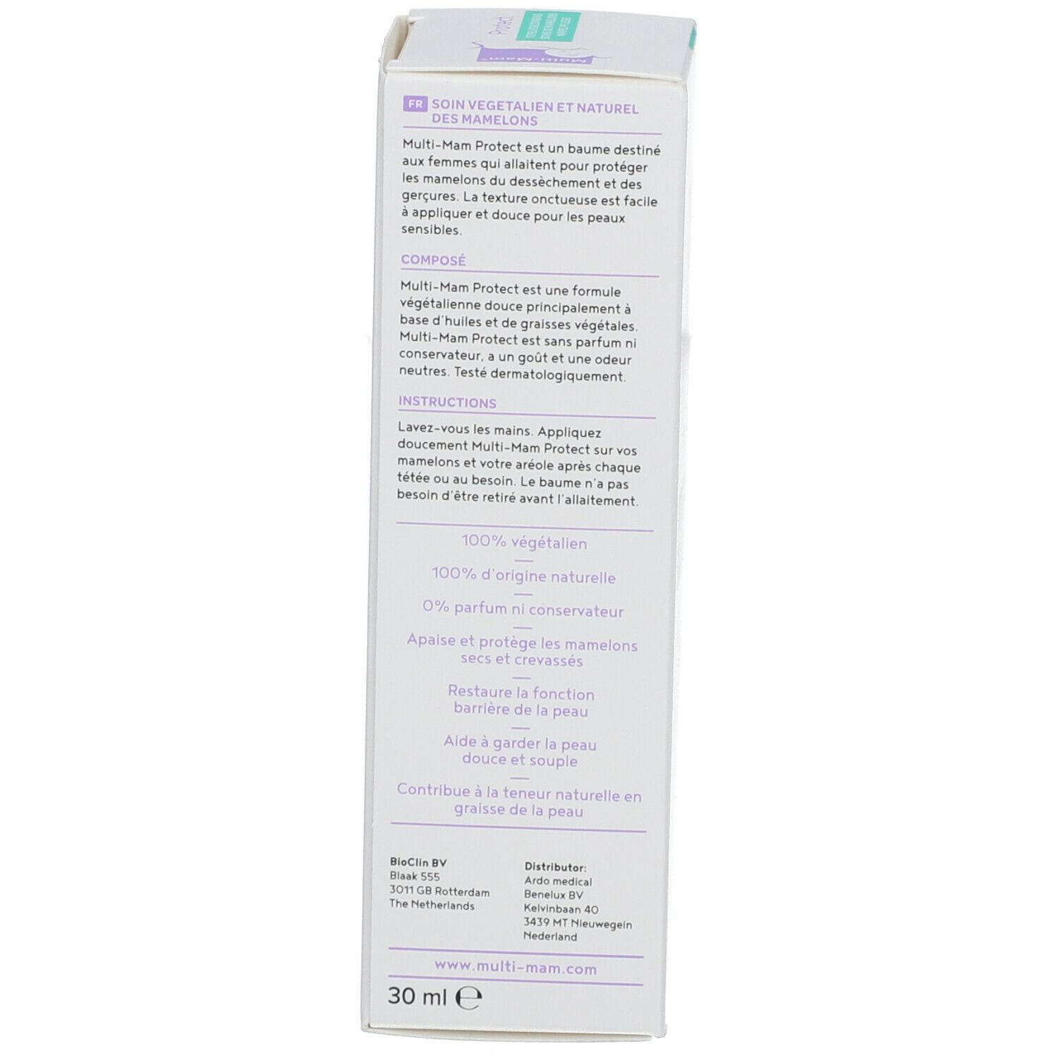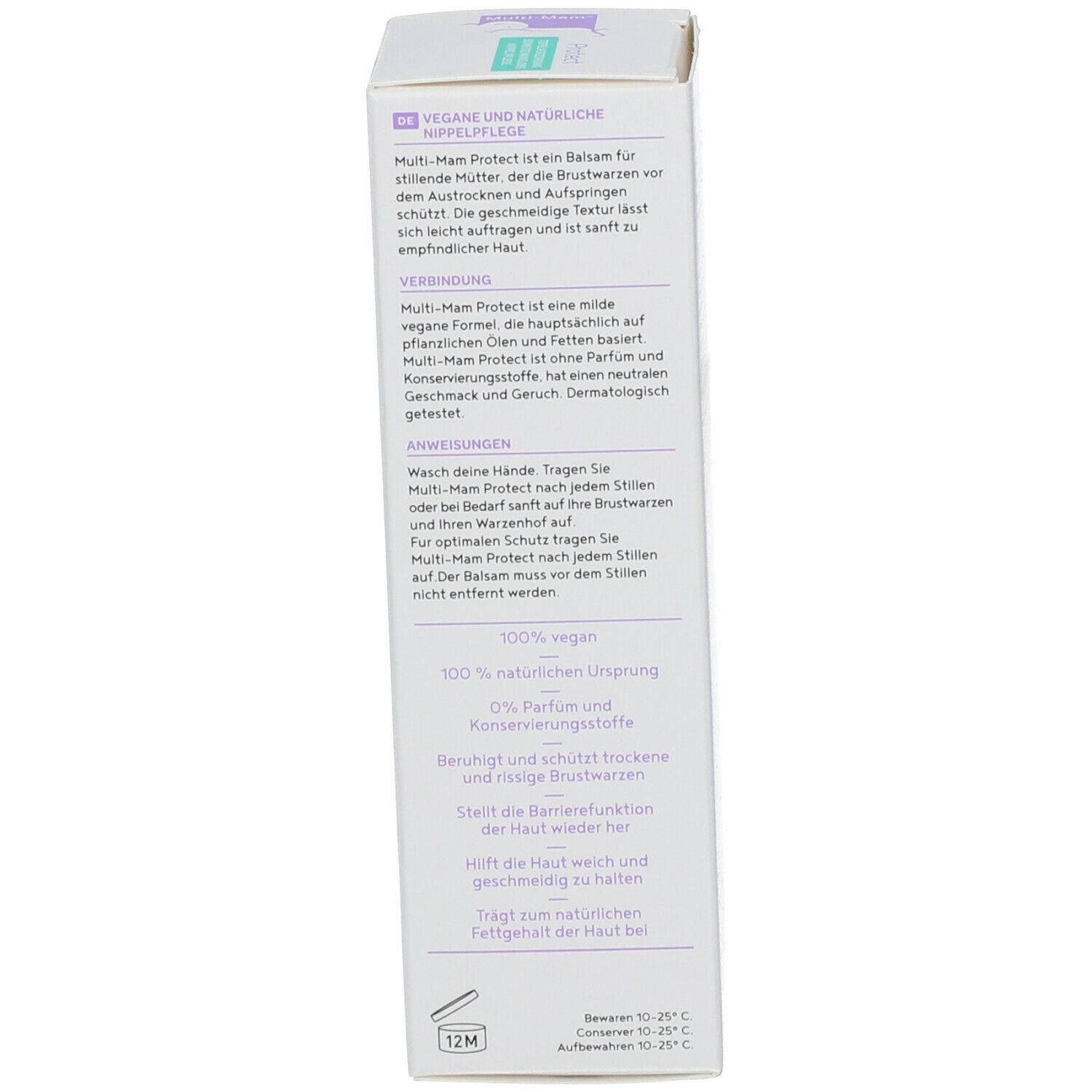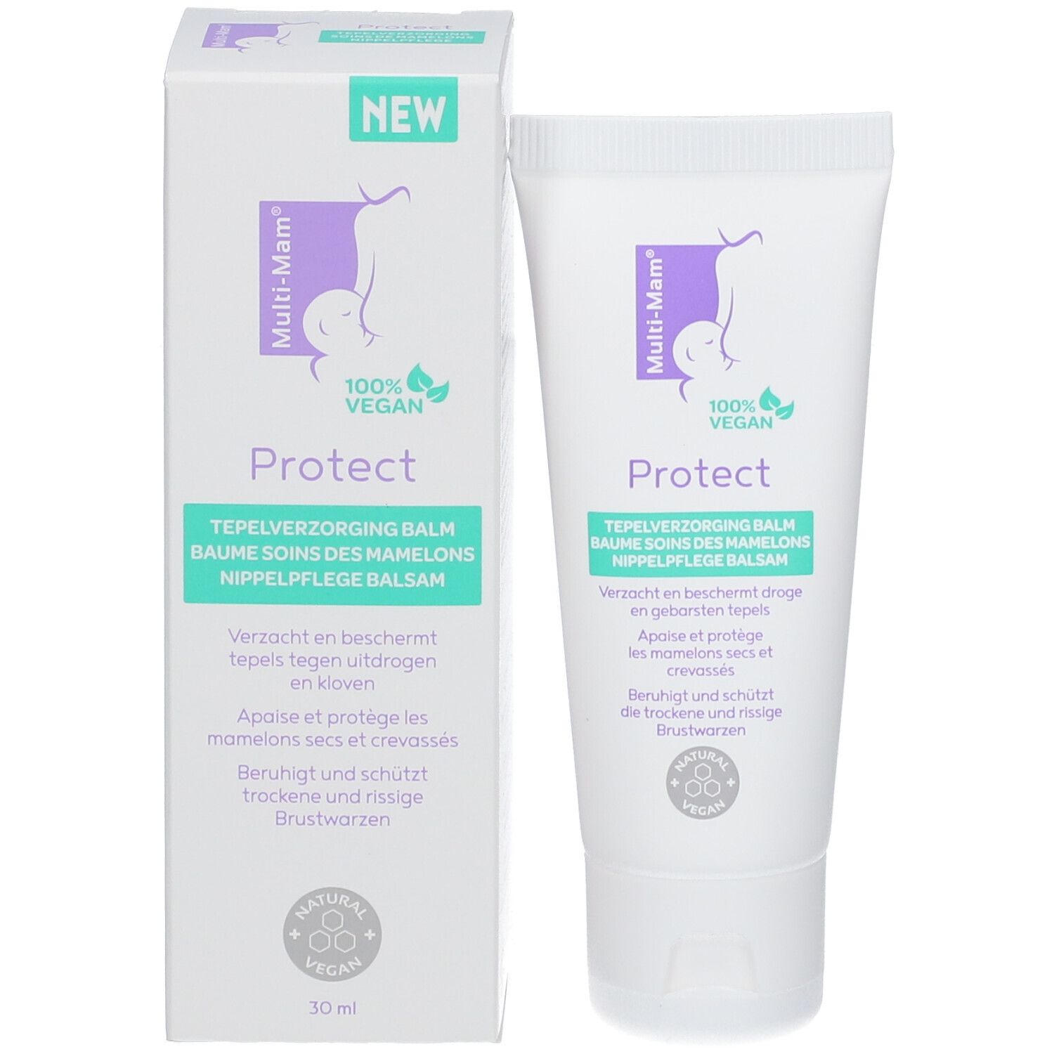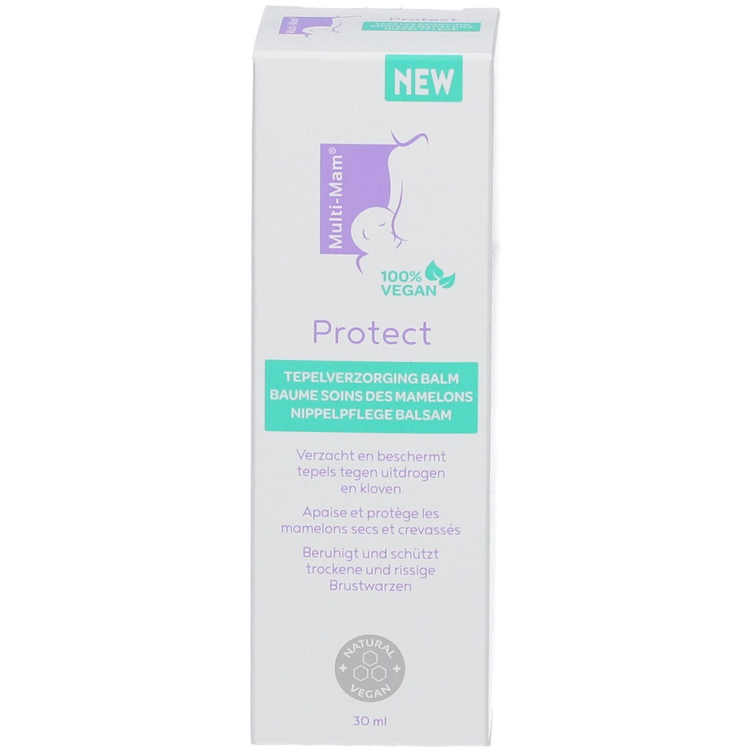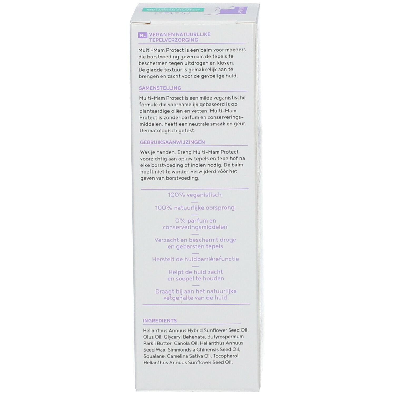 Вeganский бальзам для сосков Multi-Mam® Balsam Protect защищает соски во время грудного вскармливания от сухости и трещин. Содержит 100% натуральные растительные масла и жиры, не содержит отдушек и консервантов. Не требует смывания перед кормлением, дерматологически протестирован.