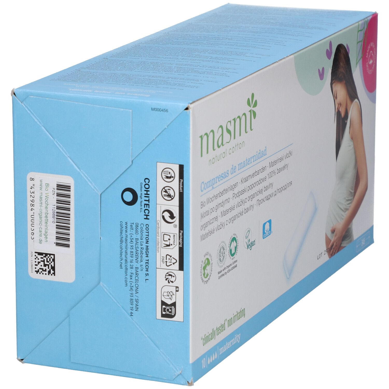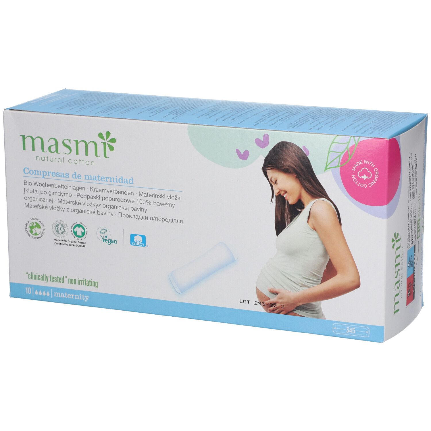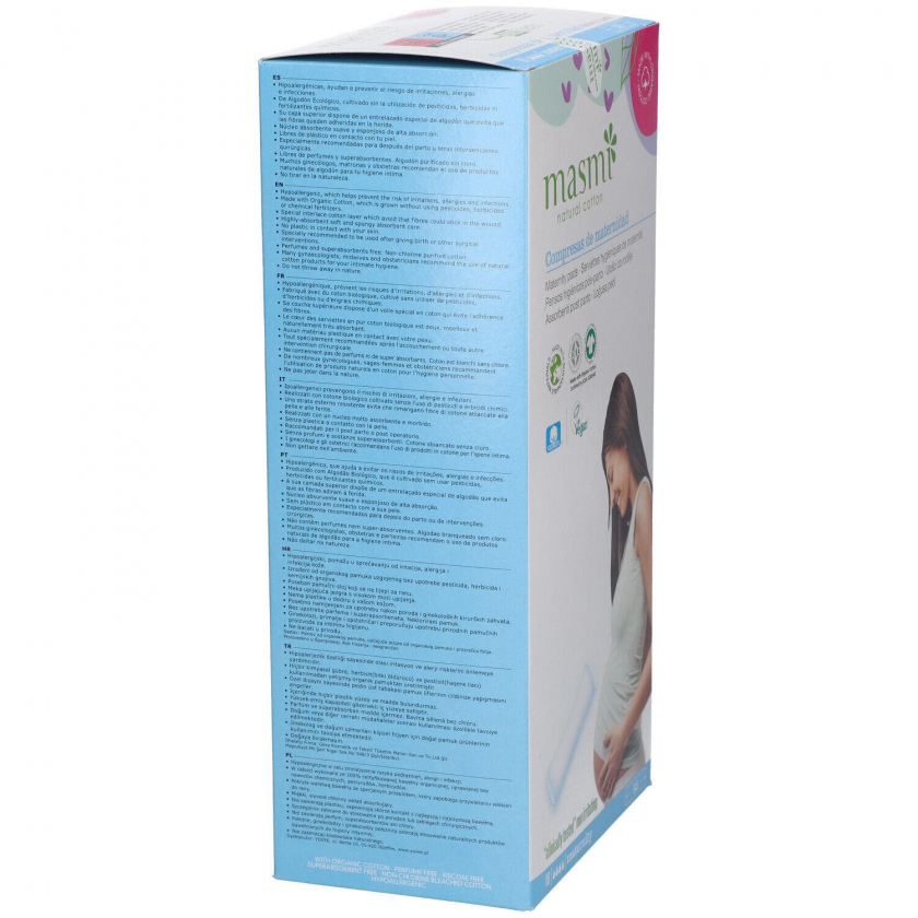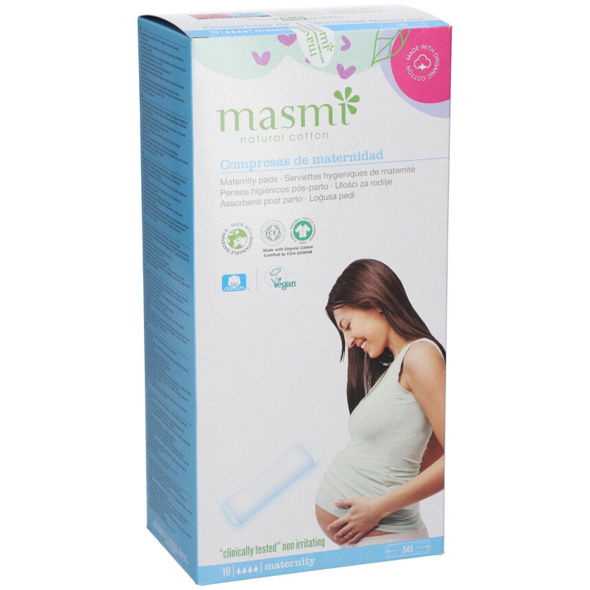 Гигиенические прокладки masmi для послеродового периода из 100% органического хлопка. Гипоаллергенные, pH-нейтральные, без парфюма, пластика и химикатов. Подходят также после хирургических вмешательств.