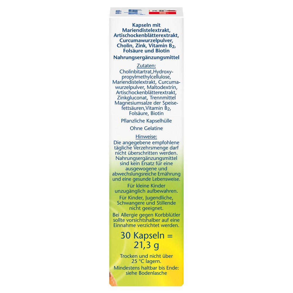 Биологически активная добавка Doppelherz® aktiv Leber plus с холином, цинком и тройной комбинацией растительных экстрактов (расторопша, артишок, куркума) для поддержания нормальной функции печени и пищеварения. Содержит витамины группы B и минералы.