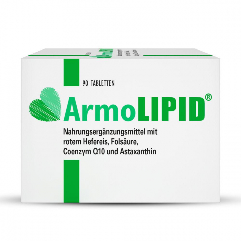 Биологически активная добавка Armolipid® с комплексом красного риса для естественного контроля уровня холестерина. Содержит монаколин K, фолиевую кислоту, астаксантин и коэнзим Q10. Принимается по 1 таблетке в день для поддержания здорового уровня холестерина и профилактики сердечно-сосудистых заболеваний.