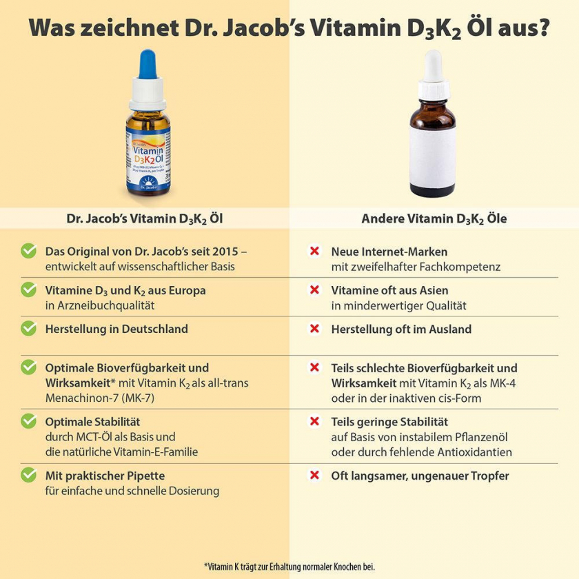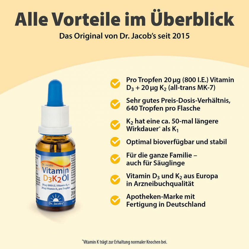 Dr. Jacob's Vitamin D3K2 Öl 800 IE/20 mcg D3+K2 640 Tropfen