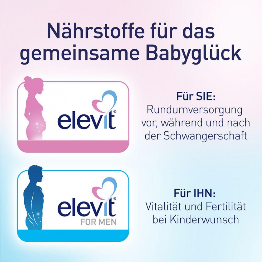 Elevit® Kinderwunsch-Set - комплекс витаминов и минералов для пар, планирующих беременность. Включает Elevit® 1 для женщин (поддержка с момента планирования до 12 недели беременности) и Elevit® FOR MEN для мужчин (улучшение качества спермы и мужской фертильности). Содержит фолат, цинк, селен, железо и другие важные витамины и минералы.