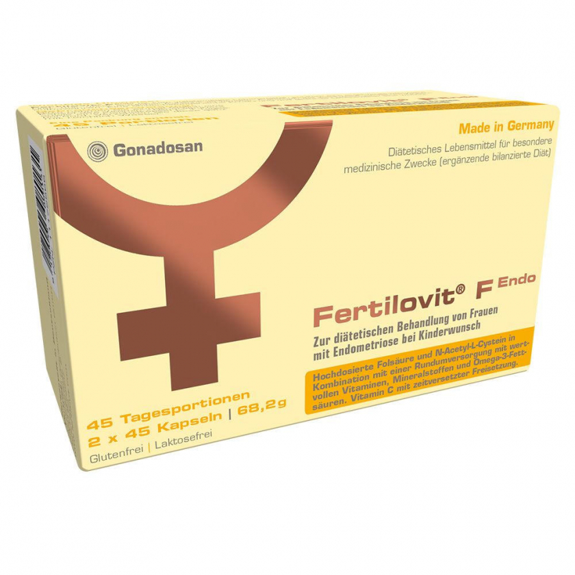Fertilovit® F Endo - диетическая добавка для женщин с эндометриозом при планировании беременности. Содержит высокодозированную фолиевую кислоту, N-ацетил-L-цистеин, витамины, минералы и омега-3 жирные кислоты для поддержки репродуктивного здоровья