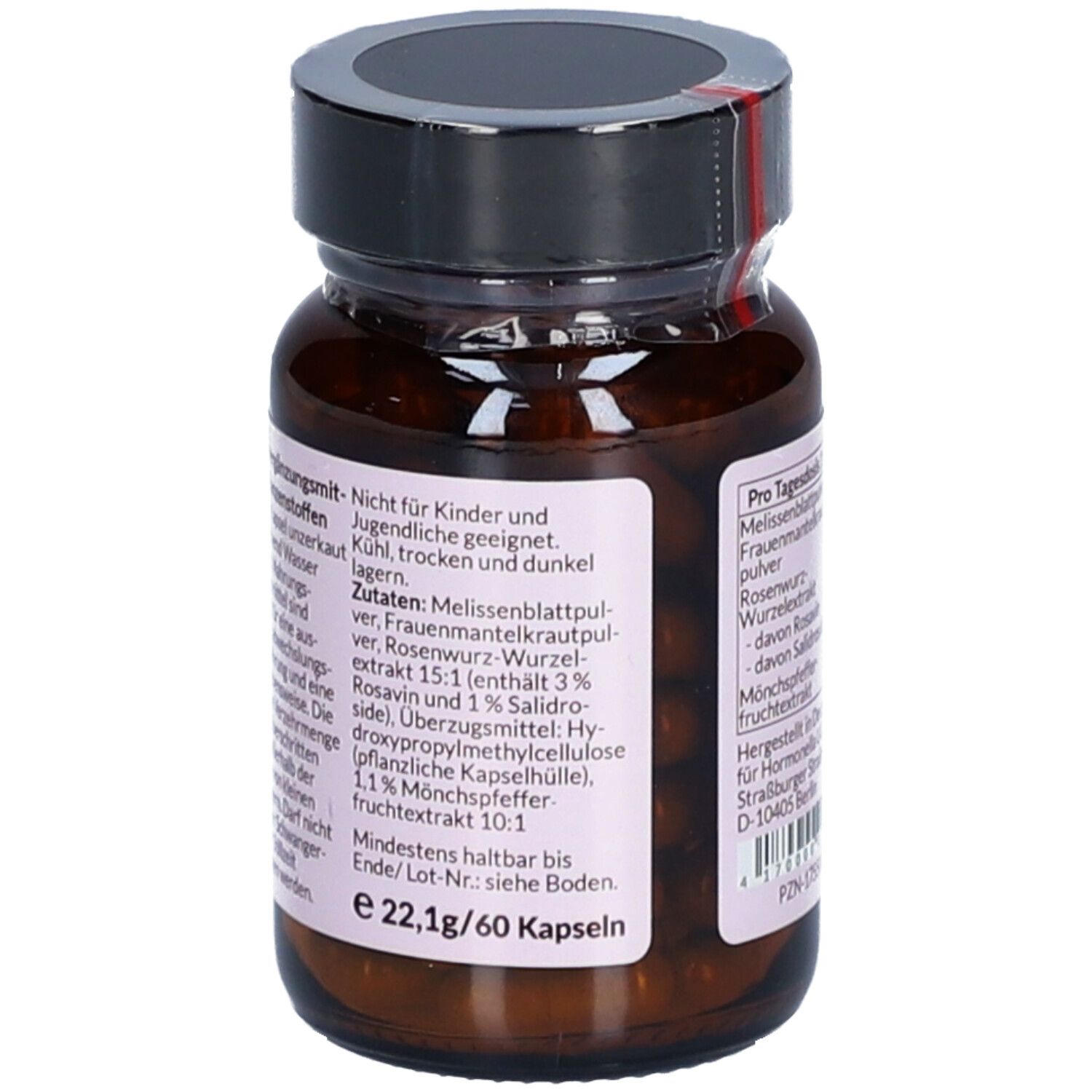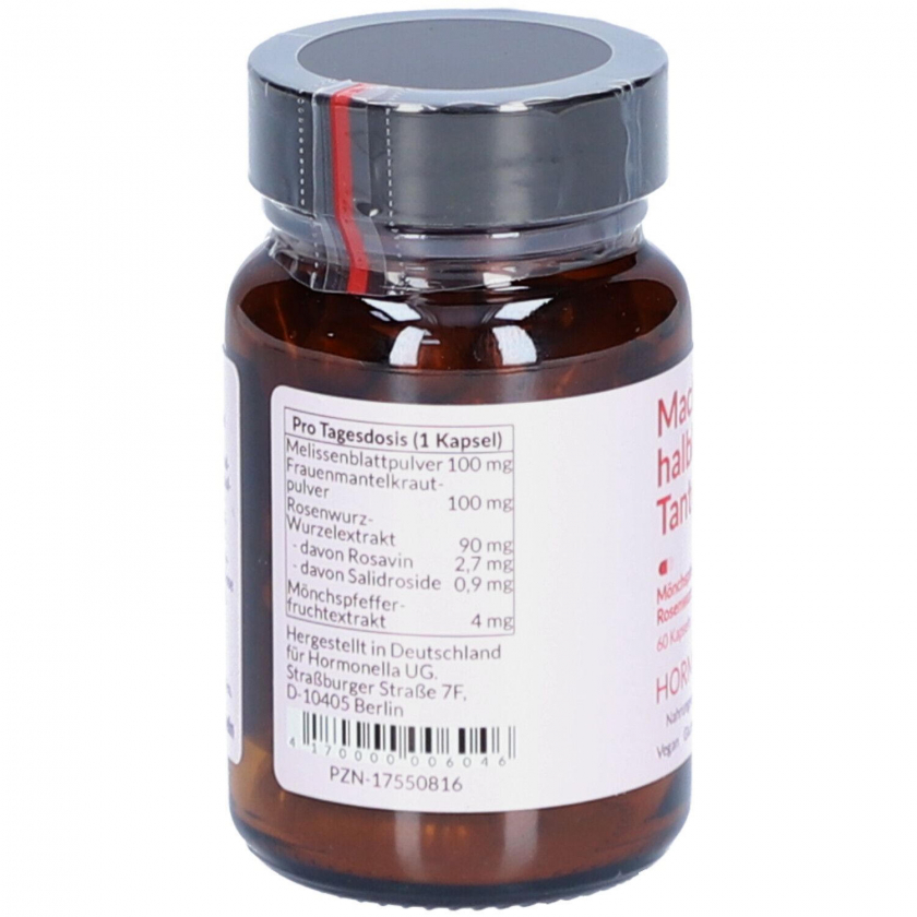Состав: Экстракт плодов монашеского перца (10:1), экстракт корня розовой родиолы (15:1, 3% розавина и 1% салидрозида), трава манжетки обыкновенной и мелиссы. Оболочка капсулы: гидроксипропилметилцеллюлоза.