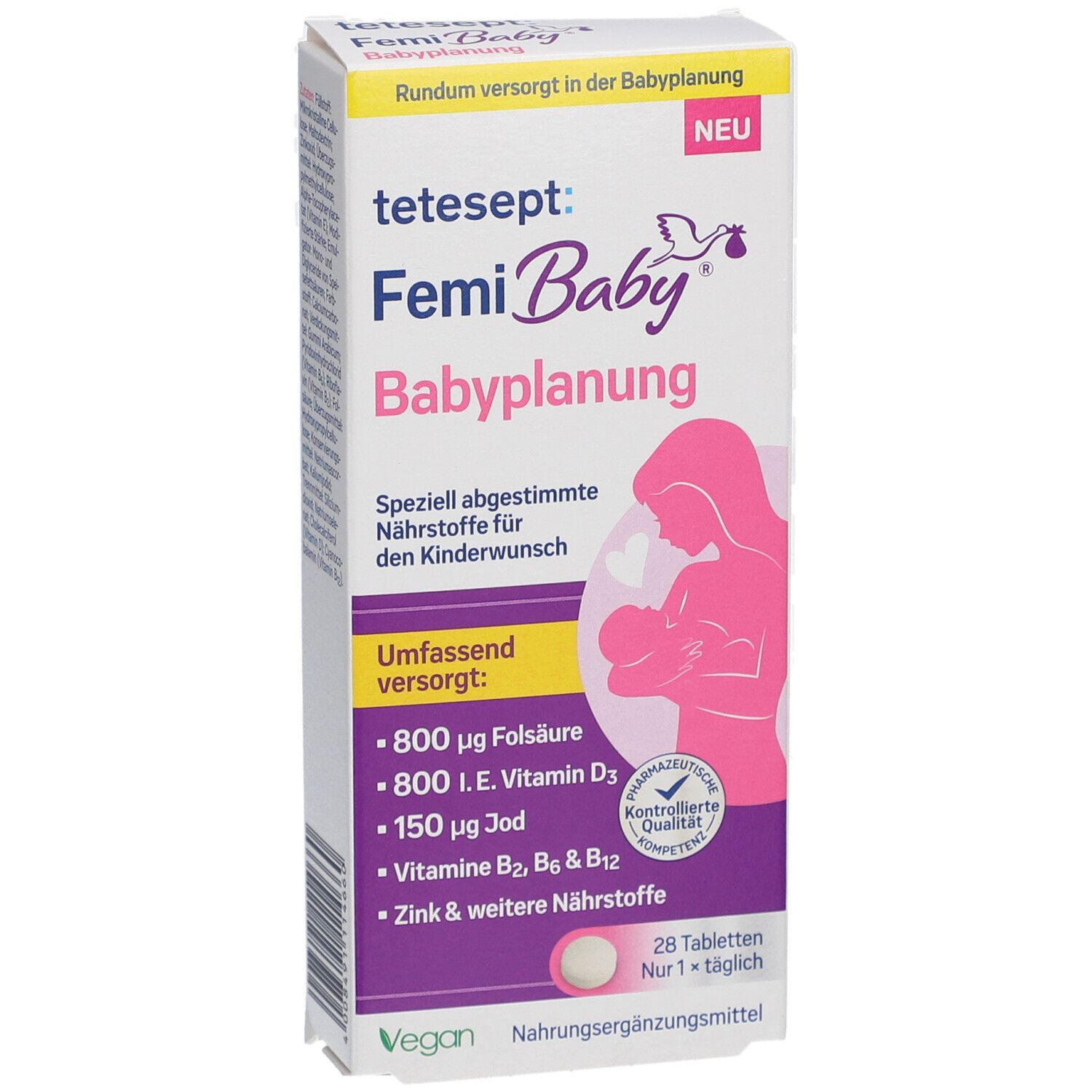 Tetesept Femi Baby Babyplanung - пищевая добавка с фолиевой кислотой, йодом и витаминами для поддержки женского здоровья при планировании беременности. Содержит специально подобранную комбинацию питательных веществ, способствующих нормальной фертильности и репродукции.
