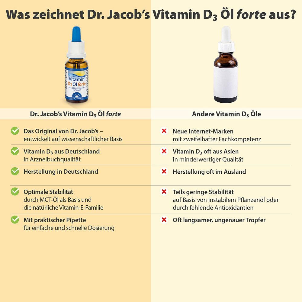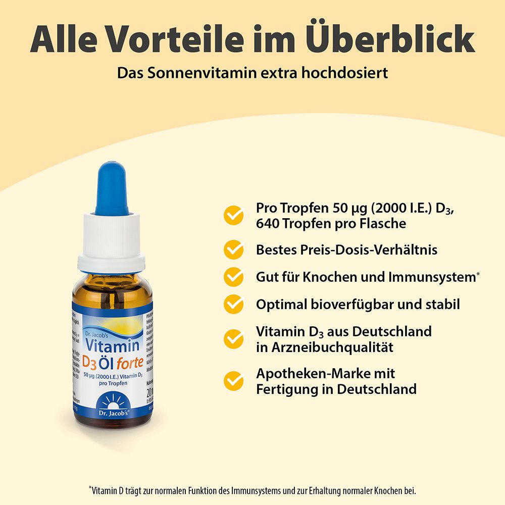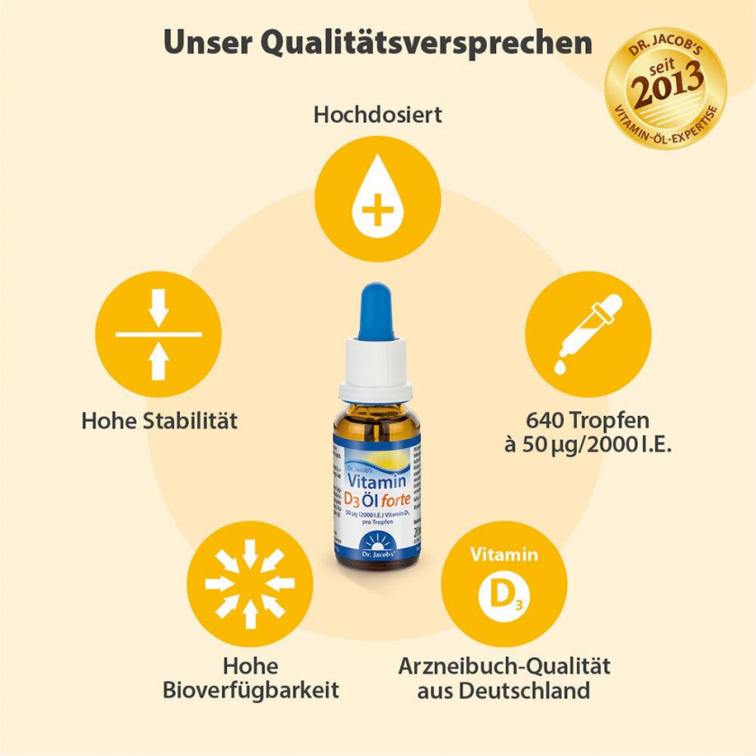 Dr. Jacob's Vitamin D3 Öl forte 2000 IE D3 hochdosiert 640 Tropfen vegetarisch