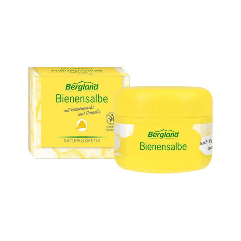 Натуральная пчелиная мазь Bergland для ухода и защиты раздраженной и чувствительной кожи. Содержит пчелиный воск, прополис, эфирные масла и растительные масла холодного отжима. Подходит для поддержки при терапии акне. Сертифицирована по стандарту BDIH COSMOS Natural, 100% натуральный состав без консервантов и синтетических добавок.