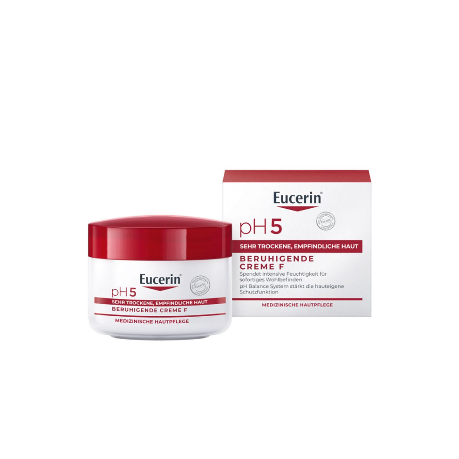 Eucerin pH5 Reichhaltige Creme F - интенсивный увлажняющий крем для чувствительной и сухой кожи лица и тела. Содержит pH Balance System и 3% декспантенол для восстановления естественного pH кожи и укрепления защитного барьера. Обеспечивает 24-часовое увлажнение, подходит для взрослых и детей от 3 лет.