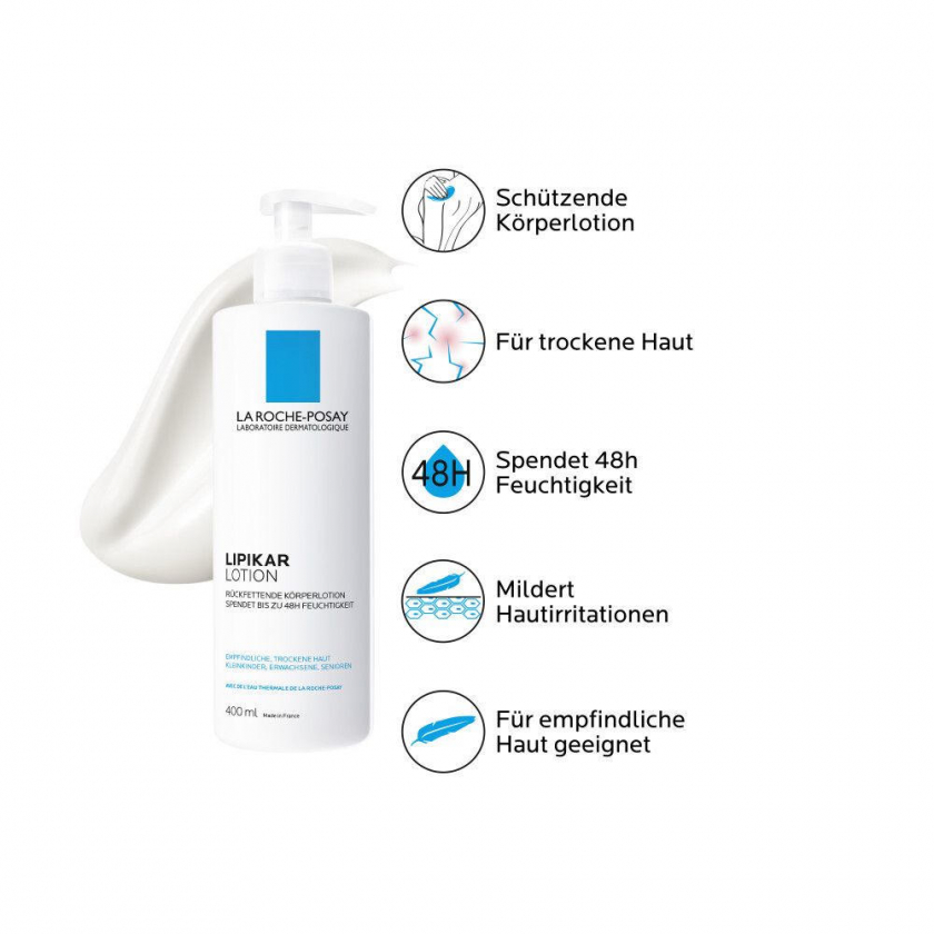 La Roche Posay Lipikar Lotion: Hydratisierende Bodylotion mit Sheabutter und Niacinamid für sehr sensible und trockene Haut für die ganze Familie.