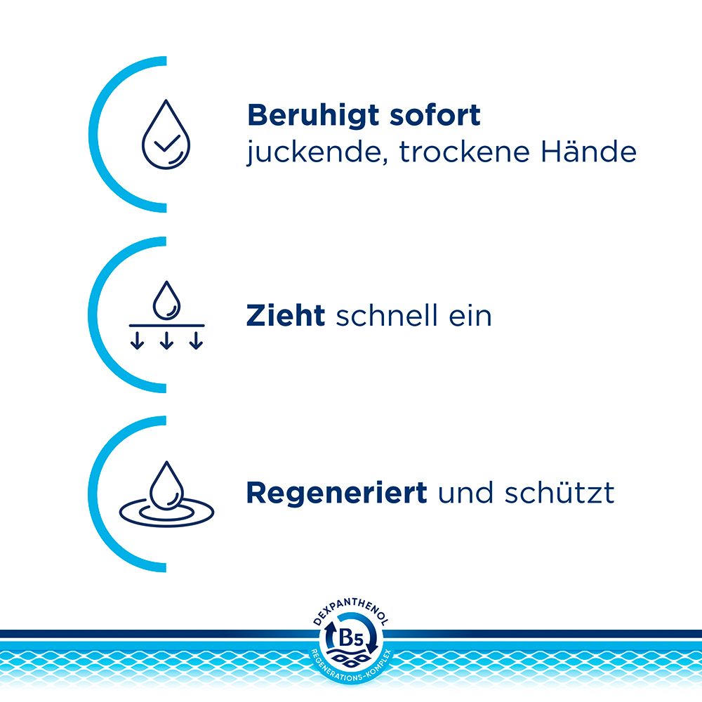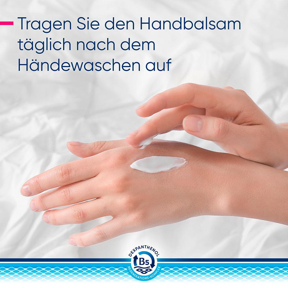 Bepanthol® DERMA Regenerierender Handbalsam für die tägliche Pflege, beruhigt sofort juckende, trockene Hände, zieht schnell ein und spendet bis zu 48h Feuchtigkeit. Mit B5-Regenerations-Komplex