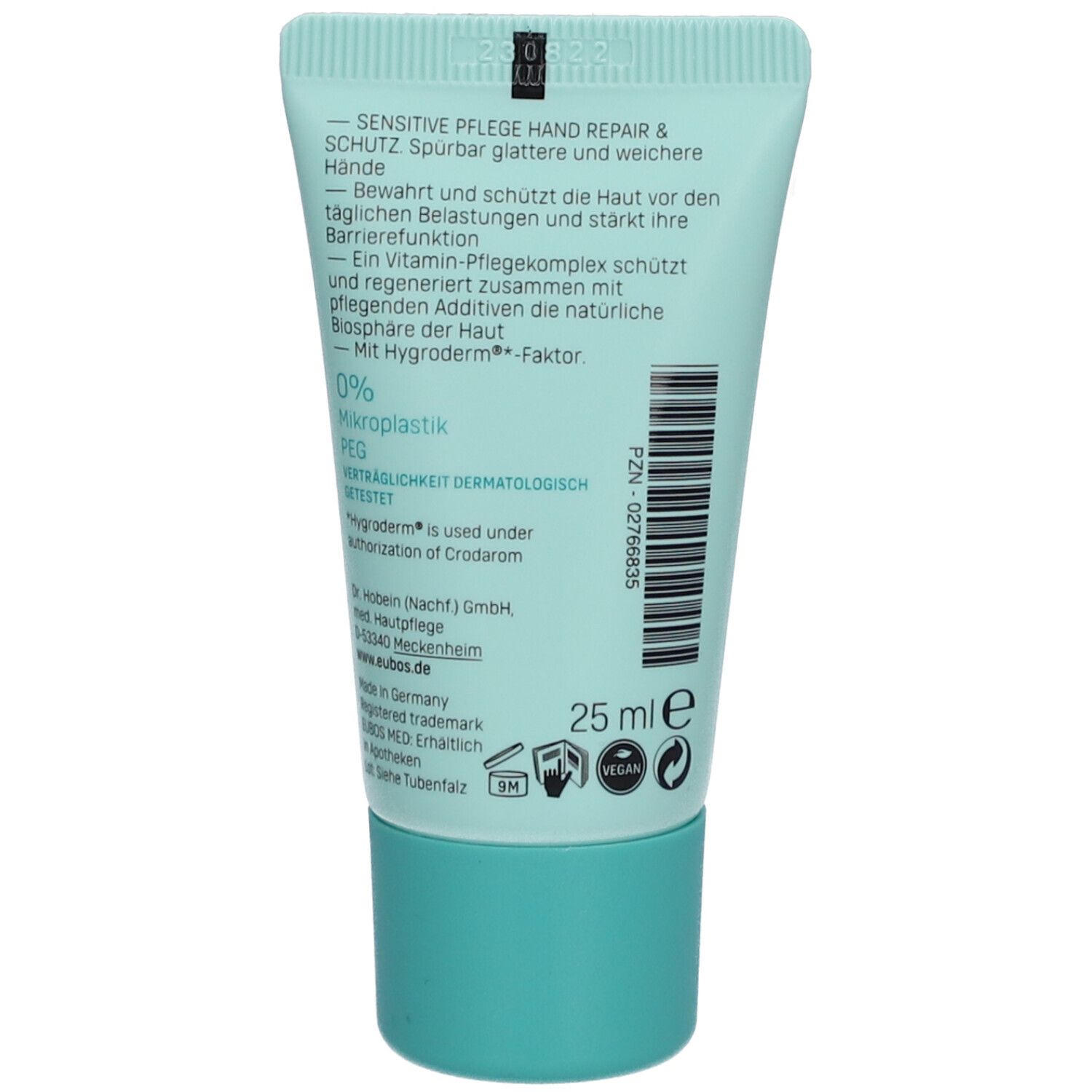 EUBOS Sensitive Hand Repair & Schutz Handcreme - восстанавливающий крем для рук с 4-кратным действием. Регенерирует сухую, потрескавшуюся кожу рук, интенсивно увлажняет, укрепляет защитный барьер и защищает от вредных факторов окружающей среды. Содержит провитамин B5, витамин E, аллантоин и гигродерм-фактор с аминокислотами. Не содержит красителей, ланолина, ПЭГ и минеральных масел.